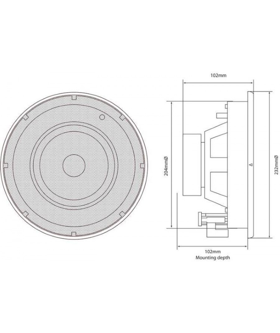 Ηχείο οροφής υψηλής ποιότητας, το οποίο διαθέτει hi-flex κώνο πολυπροπυλενίου για εκτεταμένη απόκριση στις χαμηλές συχνότητες, και μονάδα mylar tweeter για την ακριβή αναπαραγωγή HF. Ο ειδικός σχεδιασμός του με flared wave-guide baffle, βοηθά στην καλύτερη διασπορά του ήχου, με αποτέλεσμα την ευρύτερη κάλυψη του χώρου. Τέλος, το υψηλής ποιότητας φίλτρο συχνοτήτων, δίνει ακρίβεια στο διαχωρισμό τους, ενώ το κάλυμμα twist-fit επιτρέπει τη γρήγορη και εύκολη εγκατάσταση του ηχείου.Αποτελεσματικό 2 δρόμων (2-way) δίκτυο crossover.Ακροδέκτες από επιχρυσωμένο ελατήριο.Κομψά και διακριτικά.Φωτισμένο διάφραγμα για ευρεία διασπορά.3 βάσεις ''dog-ear''Χαρακτηριστικά: