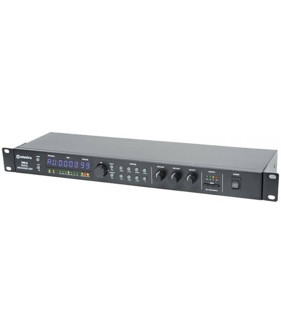 Μονάδα ψηφιακής αποστολής μηνυμάτων για προγραμματισμένη αναπαραγωγή ήχου. Τα αρχεία ήχου αποθηκεύονται σε μια αφαιρούμενη κάρτα SD και μπορούν να μεταφερθούν εισάγοντας την σε έναν υπολογιστή ή απευθείας εγγραφή στο DM-8. Τα αρχεία αποθηκεύονται επίσης στην SD ως ξεχωριστό αρχείο, το οποίο μπορεί να επεξεργαστεί από υπολογιστή και να αποθηκευτεί για δημιουργία αντιγράφων ασφαλείας. Ξεχωριστές κάρτες SD μπορούν να αποθηκευτούν με διαφορετικά ηχητικά μηνύματα και χρονοδιαγράμματα και να ανταλλάσσονται για διαφορετικές λειτουργίες. Μια είσοδος μικροφώνου / γραμμής μπορεί να χρησιμοποιηθεί για εγγραφή ή για ζωντανές ανακοινώσεις που μπορούν να αντικαταστήσουν την αναπαραγωγή SD. Μια είσοδος γραμμής BGM παρέχεται για αναπαραγωγή μουσικής στο παρασκήνιο με το δικό της επίπεδο ελέγχου και είναι σε σίγαση κατά την αναπαραγωγή των μηνυμάτων ή κατά τη διάρκεια της τηλεειδοποίησης. Μπορούν να προγραμματιστούν έως και 99 αρχεία για την αναπαραγωγή ενός συγκεκριμένου αρχείου ήχου από την κάρτα SD, που ορίζεται από 24 ώρες ώρα και ημέρες της εβδομάδας. Το DM-8 μπορεί να προστεθεί σε οποιοδήποτε σύστημα ήχου για αυτόματη αναπαραγωγή ανακοινώσεων, μουσικής ή ηχητικών ειδοποιήσεων.
