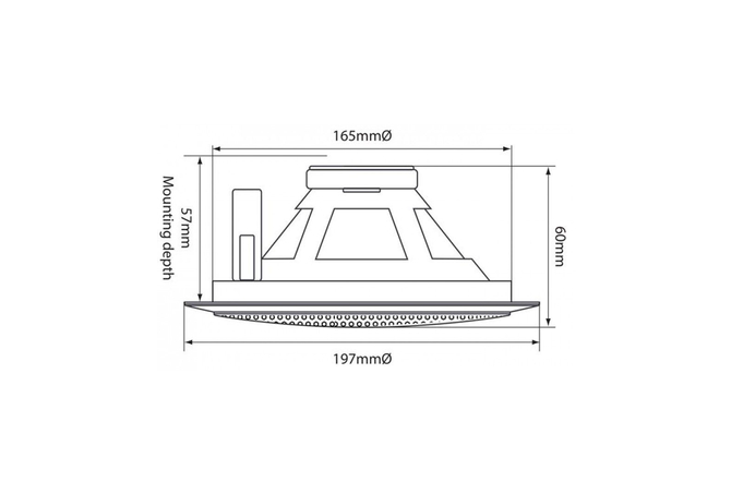 Μεταλλικό ηχείο 13.5cm (5,25") οροφής με εύκολη εφαρμογή, κατάλληλο για τοποθέτηση σε σχεδόν οποιοδήποτε υλικό. Διαθέτει μεταλλικές, επίπεδες γρίλιες, ηχείο ποιότητας και μετασχηματιστή γραμμής 100V με επιλογή 1.5W, 3W και 6W.