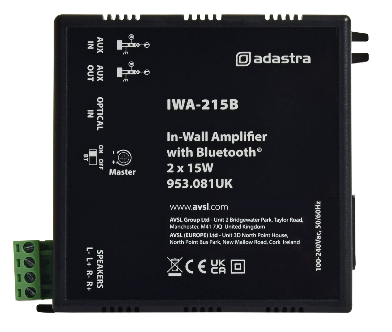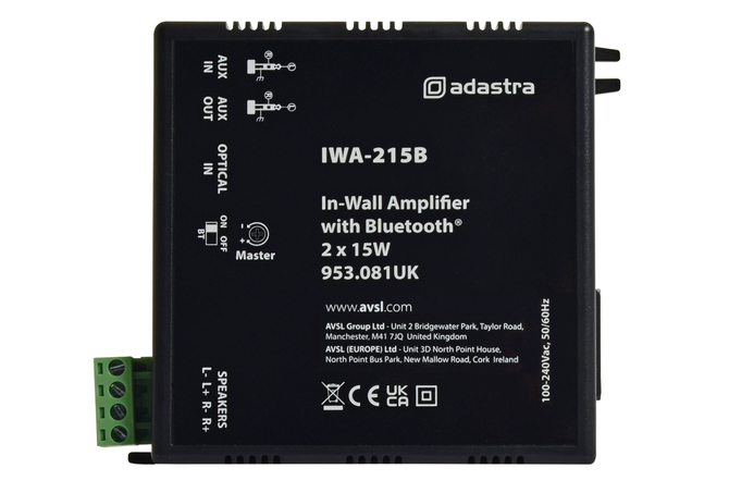 Στερεοφωνικός ενισχυτής για μουσική υπόκρουση και δημόσια διεύθυνση σε μινιμαλιστικό περίβλημα για τοποθέτηση σε τοίχους και οροφές. Ο σχεδιασμός του ενισχυτή Class-D λειτουργεί καθαρά και αποτελεσματικά με ελάχιστη διάχυση θερμότητας, σε συνδυασμό με ένα εσωτερικό ψηφιακό τμήμα τροφοδοσίας, το οποίο επιτρέπει την εύκολη σύνδεση απευθείας από την τοπική τροφοδοσία. Η συμβατότητα Bluetooth επιτρέπει ασύρματη ροή αρχείων ήχου από smart phone ή άλλη ενεργοποιημένη συσκευή εκτός από την είσοδο Aux 3,5 mm και μια οπτική ψηφιακή είσοδο ήχου, ιδανική για ενσωμάτωση σε συστήματα A-V. Για διακριτική εγκατάσταση χωρίς καμία ανάγκη για ράφια ή ντουλάπια, αυτοί οι ενισχυτές μπορούν να συνδυαστούν με πολλούς διαφορετικούς τύπους ηχείων για να παρέχουν το ιδανικό ηχοσύστημα για κάθε μικρό έως μεσαίο χώρο ή να αναπτύσσονται σε αριθμούς για να δημιουργήσουν ήχο ευρείας περιοχής εγκατάσταση.