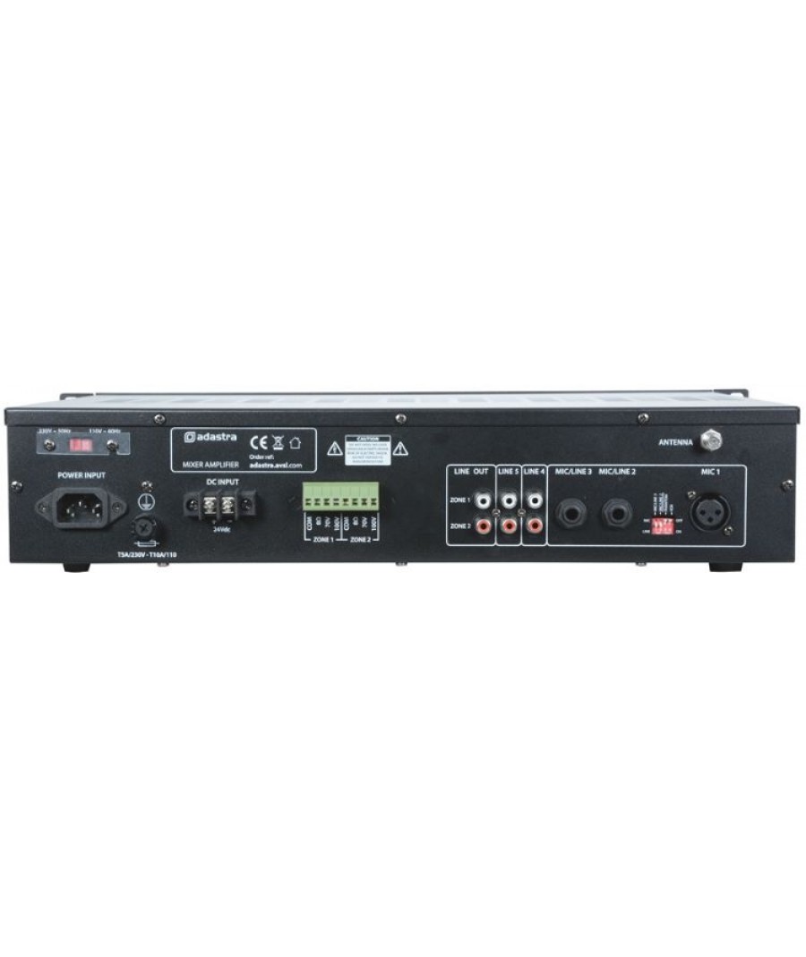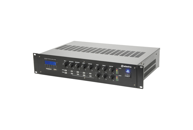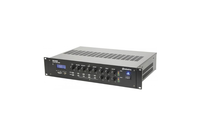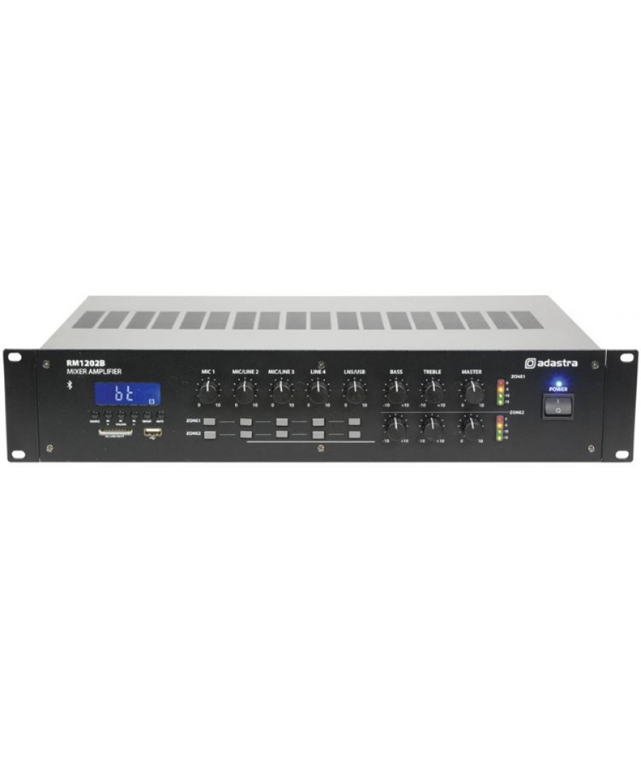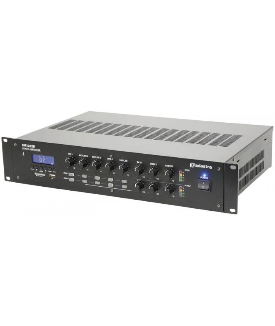 Μίκτης-ενισχυτής με 2 ξεχωριστές εξόδους 120W σε ηχεία 100V ή 4/8 Ohms. Είσοδοι για μικρόφωνο (mic), 2 x mic / line και οι είσοδοι 2 line με ενσωματωμένη συσκευή αναπαραγωγής USB / SD / FM player και δέκτη Bluetooth μπορούν να ενεργοποιηθούν ανεξάρτητα σε οποιαδήποτε από τις δύο ζώνες. Το κανάλι Mic / Line 1, έχει μεταβλητή παράκαμψη και δυνατότητα εναλλαγής phnatom ισχύς για χρήση με πυκνωτικά μικρόφωνα. Σχεδιασμένο για εγκαταστάσεις όπου απαιτείται ανεξάρτητη τηλεειδοποίηση και ήχος σε 2 ξεχωριστές ζώνες.