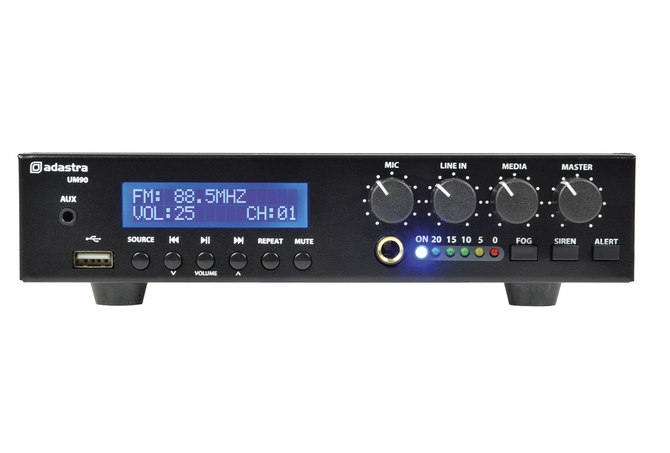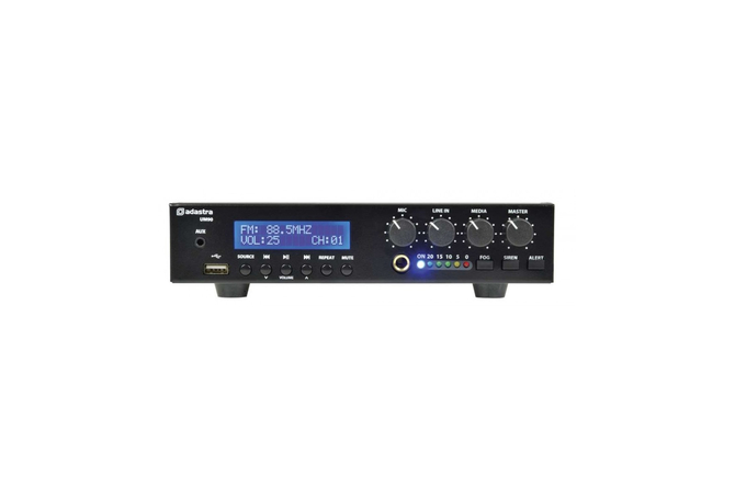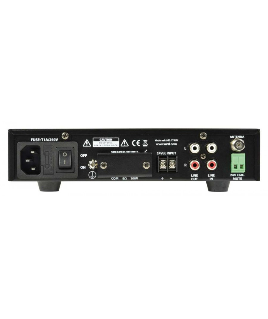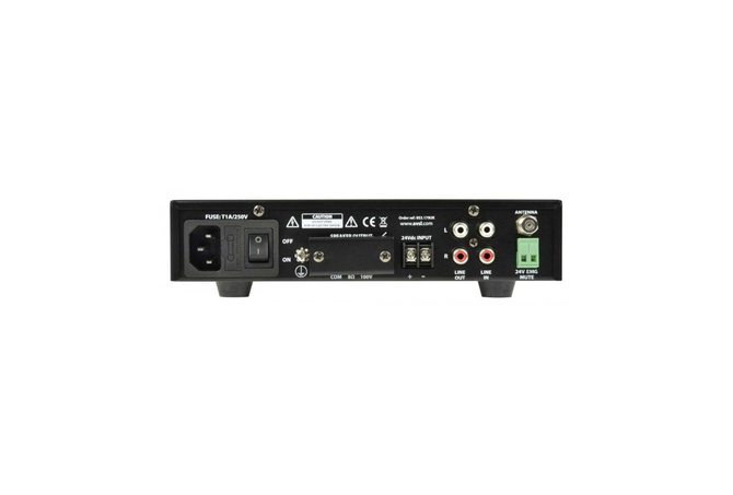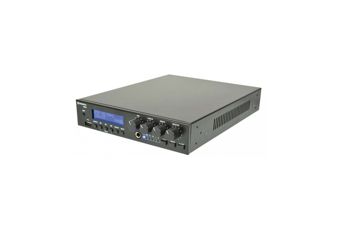 Ενισχυτής-Μίκτης 100V με συσκευή αναπαραγωγής ήχου USB, δέκτη FM και ασύρματο δέκτη BT σε εξαιρετικά συμπαγές περίβλημα. Η είσοδος μικροφώνου, η είσοδος γραμμής και οι ενότητες USB/FM/BT διέπονται από τα χειριστήρια έντασης του μπροστινού πίνακα και την κύρια ένταση. Η μονοφωνική έξοδος είτε σε γραμμή 100V είτε σε φορτίο ηχείων 8 Ohms συνδέεται μέσω ακροδεκτών βίδας στο πίσω πλαίσιο. Παρέχεται με υλικό για τοποθέτηση 2 μονάδων δίπλα -δίπλα σε ράφι 1U 19". Σχεδιασμένο ως ευέλικτη λύση για μικρές και μεσαίες εγκαταστάσεις PA.
