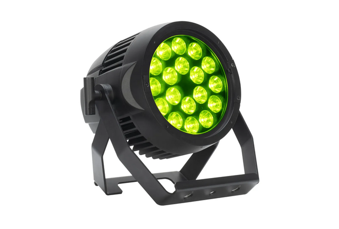 ADJ Encore LP18 IP, LED par βαρέως τύπου, με προστασία IP65 και 18, 4-IN-1 Quad LEDs των 20W σε κυκλική διάταξη, μεταλλικής κατασκευής, με ομαλή μίξη χρωμάτων, δημιουργία wash, γραμμικό έλεγχο θερμοκρασίας φωτισμού από 2700K έως 7000K και 10 μοίρες ακτίνα δέσμης.