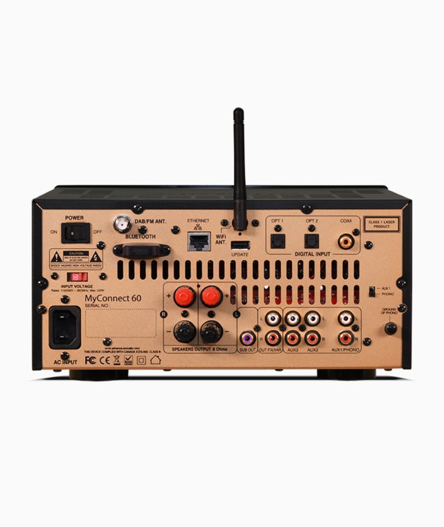 Προκειμένου να προσφέρουν στους λάτρεις της μουσικής μια βέλτιστη μουσική αναπαραγωγή, οι μηχανικοί μας επέλεξαν να ενσωματώσουν έναν ενισχυτή κατηγορίας AB, συνθέτοντας έτσι τα καλύτερα της κατηγορίας Α και κατηγορίας Β μαζί. Αυτή η μοναδική επιλογή για ένα ολοκληρωμένο προϊόν εγγυάται πολύ υψηλή ποιότητα αναπαραγωγής ήχου.Τα περισσότερα ανταγωνιστικά προϊόντα ανήκουν στην κατηγορία D. Ο ενισχυτής είναι η καρδιά του συστήματος υψηλής πιστότητας σας, έχει το βαρύ καθήκον να «οδηγεί» τα ηχεία σας, να εξάγει την πεμπτουσία τους.Πρέπει να παρέχει ουδετερότητα, λεπτομέρεια, δυναμική και σαφήνεια του ηχητικού μηνύματος. Η επιλογή της κατηγορίας ΑΒ αποδείχθηκε προφανής. Το MyConnect 60 περιλαμβάνει μια συσκευή αναπαραγωγής ήχου δικτύου. Μπορείτε να παίξετε τη δική σας μουσική (PC / MAC, NAS), να απολαύσετε υπηρεσίες ροής όπως Spotify, Deezer, Tidal, Qobuz, Tune-In, κ.λπ. Ακούστε υπηρεσίες ροής, ραδιόφωνο Διαδικτύου μέσω TuneIn, ραδιόφωνο iHeart και άλλα, Airplay και τη μουσική σας από το smartphone ή το tablet σας και άλλα μέσα.