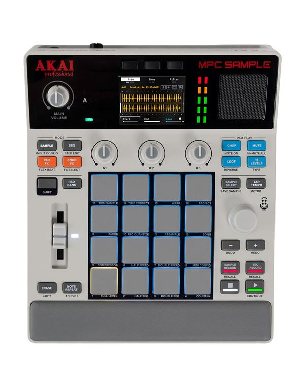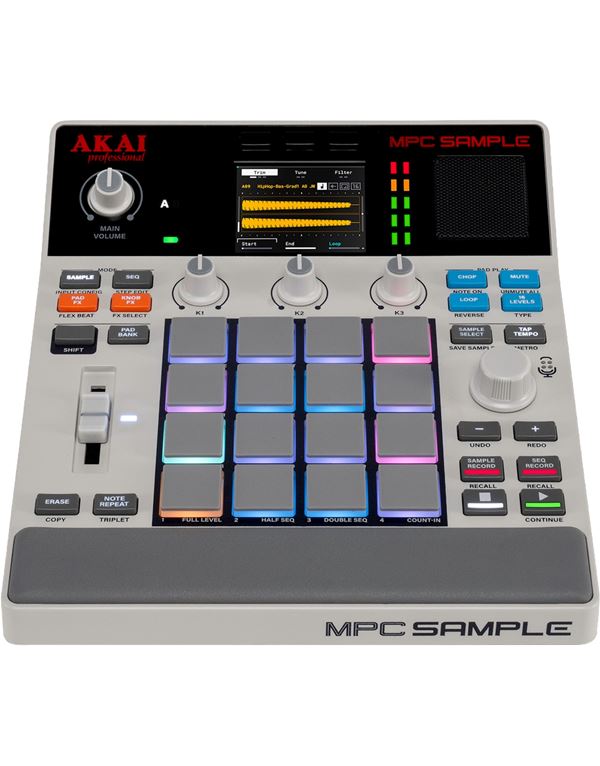 Το Akai MPC Sample είναι ένα φορητό, αυτόνομο sampler, sequencer και επεξεργαστής εφέ που μεταφέρει τη θρυλική ροή εργασίας των MPC σε ένα εξαιρετικά compact μέγεθος. Εμπνευσμένο από τα κλασικά MPC60 και MPC3000, προσφέρει άμεσο beatmaking με RGB pads, έγχρωμη οθόνη και απλούς χειρισμούς για γρήγορo sampling, chopping, looping για παραγωγή μουσικής οπουδήποτε. Με ενσωματωμένο ηχείο, μικρόφωνο, microSD, μπαταρία και USB-C Audio/MIDI, λειτουργεί πλήρως χωρίς υπολογιστή.