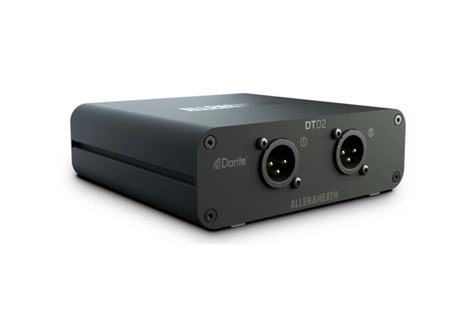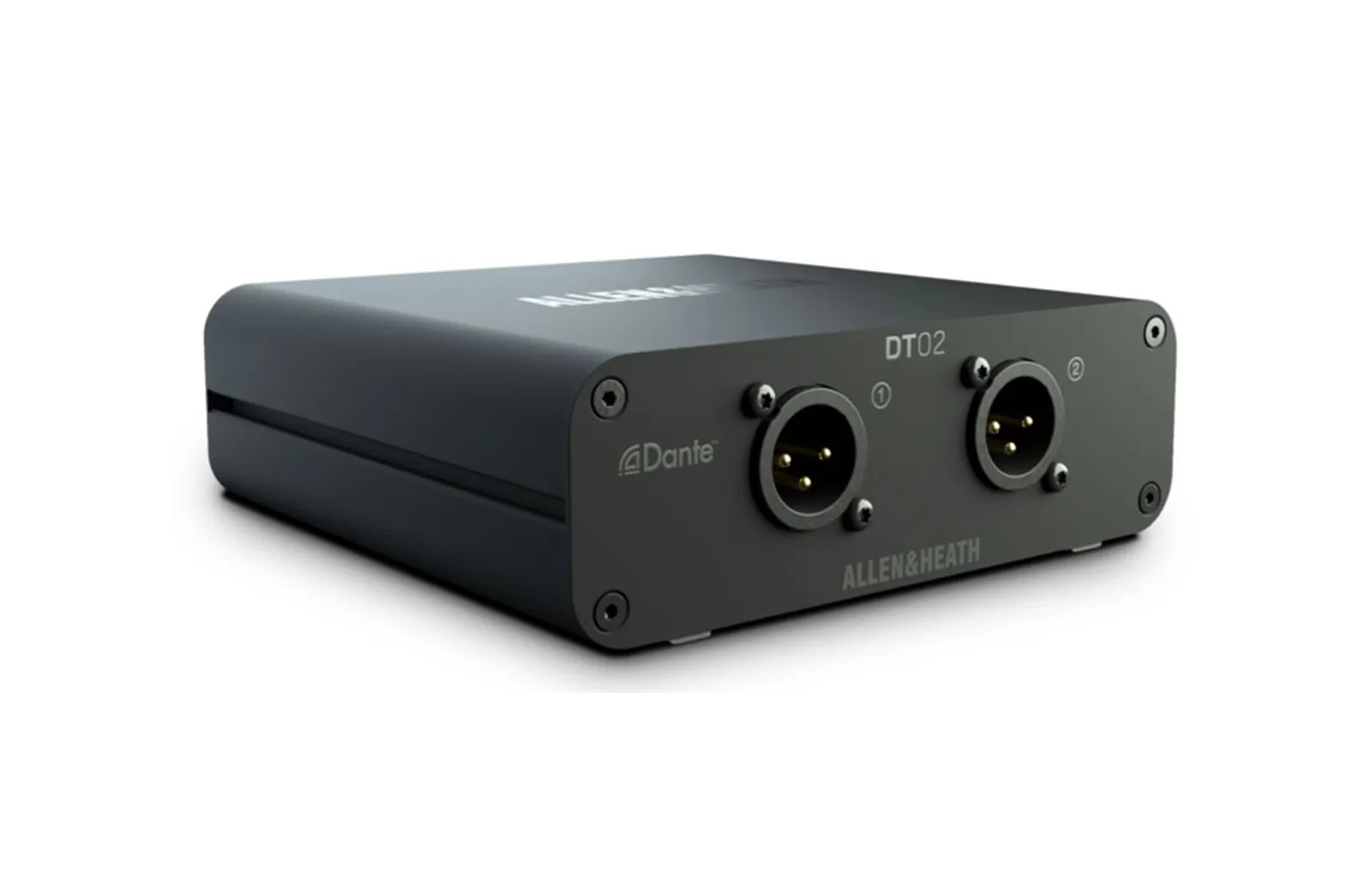 Allen & Heath DT02, φορητή συσκευή που μετατρέπει και μεταφέρει δύο κανάλια ήχου Dante μέσα από ένα ζεύγος εξόδων XLR σε αναλογικό εξοπλισμό που χρησιμοποιείται σε εγκαταστάσεις και live εφαρμογές.
