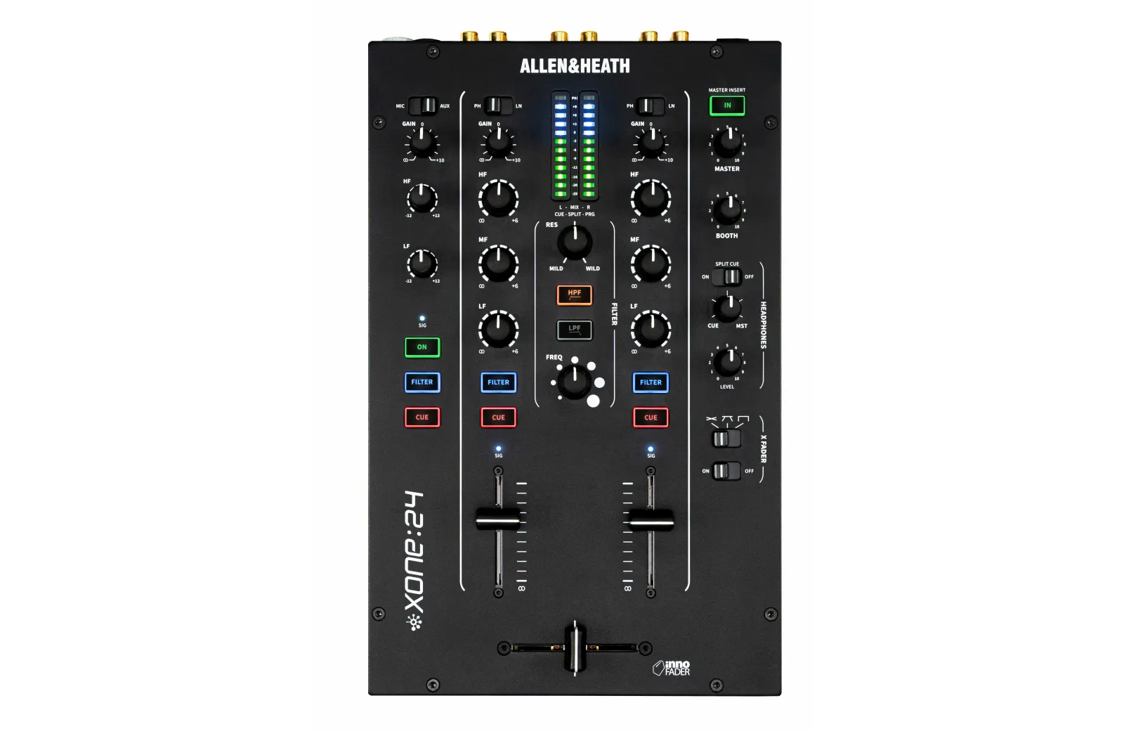 Allen & Heath Xone:24, αναλογικός μίκτης 2+1 καναλιών ιδανικός για οικιακά και επαγγελματικά set up και για συνδέσεις με πικαπ και media players. Διαθέτει EQ τριών περιοχών, τα κλασσικά φίλτρα Xone:VCF, Master insert/FX με διακόπτη, mini InnoFADER crossfader και χαμηλού θορύβου high gain RIAA προ-ενισχύσεις.