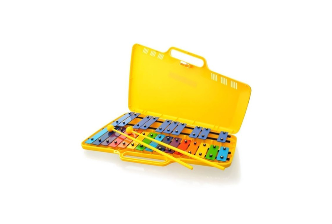 Σοπράνο μεταλλόφωνο - γκλόκενσπηλ, χρωματικό. 25 μπάρες χρωματιστές από ατσάλι.Tονικό εύρος: G4-G6, 2 οκτάβες.Βάρος 1,4 ΚgΜήκος 40cmΠλαστική ανθεκτική θήκη μεταφοράς.Περιλαμβάνονται πλαστικές μπαγκέτες.
