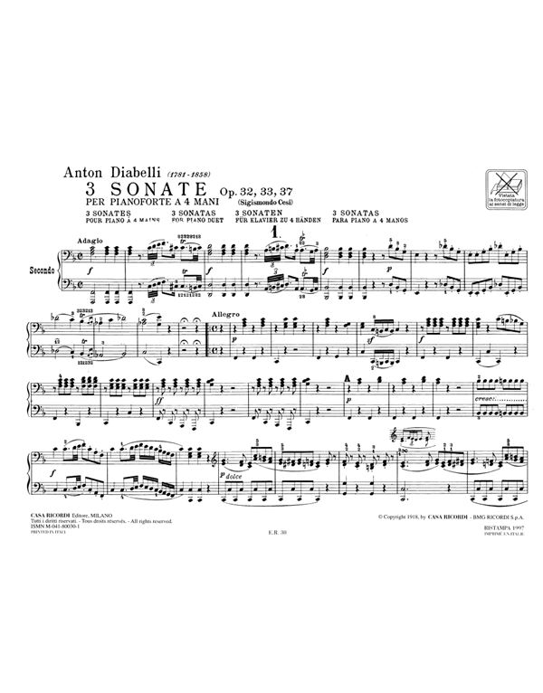 Anton Diabelli - 3 Sonates Op. 32,33,37 Per Pianoforte (Για 4 Χέρια)