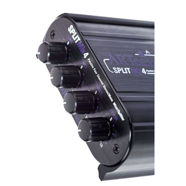 Το SPLITMix4 είναι ένα πλήρες παθητικό υβριδικό μιξεράκι το οποίο προσφέρει μια μεγάλη γκάμα απο συνδυασμούς. Μπορείτε να μιξάρετε τέσσερα στέρεο κανάλια εισόδων σε μία στέρεο έξοδο, να χωρίσετε μία στέρεο πηγή εισόδου και να την διανείμετε σε τέσσερα στέρεο κανάλια εξόδου, ή να συνδυάσετε τα παραπάνω για μεγαλύτερο εύρος εφαρμογών . Μπορείτε ακόμα να χρησιμοποιήσετε το SPLITMix4 ως τέσσερα στέρεο καναλια εισόδων μέσω των τεσσάρων αυτόνομων στάθμεων attenuators σε τέσσερα στέρεο κανάλια εξόδων .