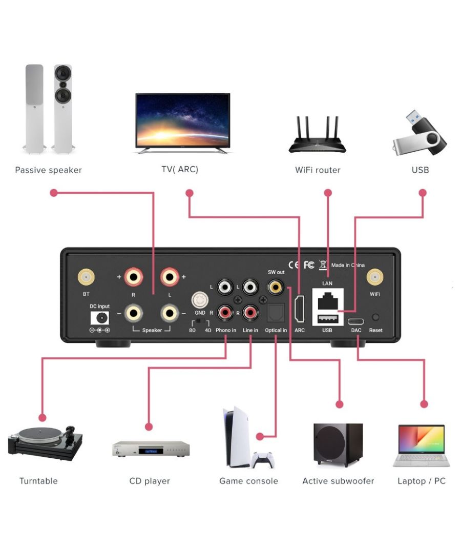 Ο ArtSound SMART EVO είναι ένας συμπαγής ενισχυτής streaming multiroom με μοντέρνο σχεδιασμό. Συνδέεται στο Wi-Fi σας ή στο σταθερό σας internet και διαθέτει μια μεγάλη ποικιλία από αναλογικές και ψηφιακές εισόδους. Όπως μια είσοδο phono για τη σύνδεση της συσκευής αναπαραγωγής και μια είσοδο HDMI για τον ήχο της τηλεόρασης. Μπορείτε να ελέγξετε το SMART EVO με το τηλεχειριστήριο ή με τη δωρεάν εφαρμογή μας. Επιπλέον, η ενσωματωμένη οθόνη OLED στο SMART EVO σας δίνει όλες τις πληροφορίες.Δυνατός και καθαρός ήχοςΤο SMART EVO δεν διαθέτει μόνο έναν ισχυρό ενισχυτή που μπορεί εύκολα να οδηγήσει κάθε τύπο ηχείου, αλλά τα εξαρτήματα έχουν επίσης επιλεγεί για την εξαιρετική ποιότητα ήχου τους. Χάρη στο ESS9023p Sabre DAC, όλα ακούγονται άψογα.