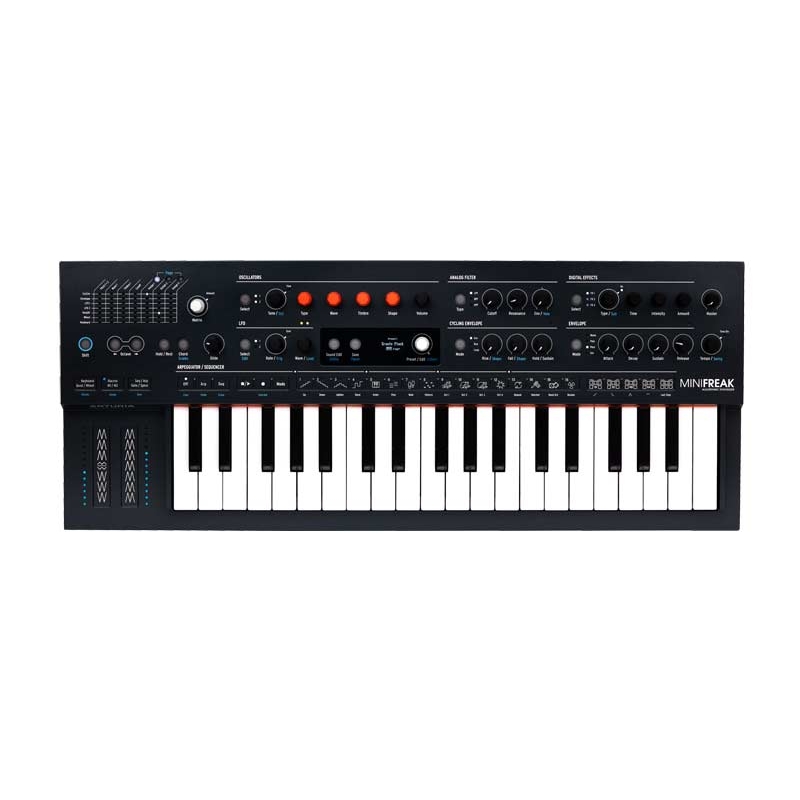 Το MiniFreak είναι ένα πολυφωνικό υβριδικό synthesizer, που συνδυάζει δύο ψηφιακές μηχανές ήχου με αναλογικά φίλτρα, modulation, sequencing, στερεοφωνικό FX και ένα λεπτό πληκτρολόγιο με 37 νότες