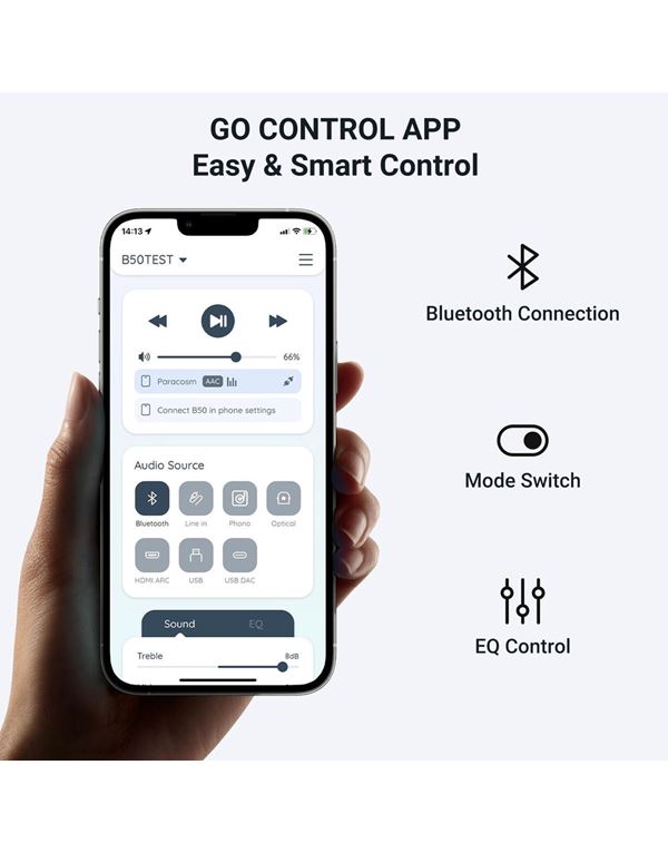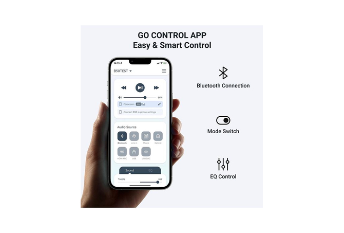 Ο B50 εξασφαλίζει σταθερή, μακρινή και χωρίς διακοπές σύνδεση, ενώ η premium κατασκευή από αλουμίνιο με επιφάνεια αμμοβολής προσφέρει αντοχή, θερμική διαχείριση και μακροζωία. Ο έλεγχος γίνεται εύκολα μέσω της δωρεάν εφαρμογής GO CONTROL (iOS/Android), ενώ με το ACPWorkbench μπορείτε να ρυθμίσετε EQ, ισορροπία καναλιών και συχνότητες για εξατομικευμένο ήχο.