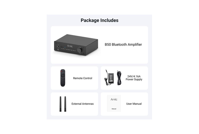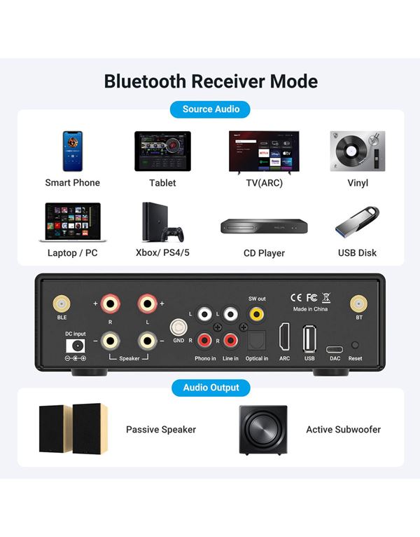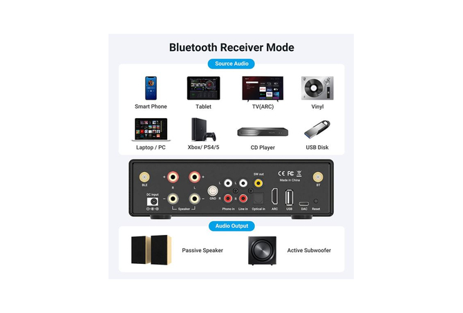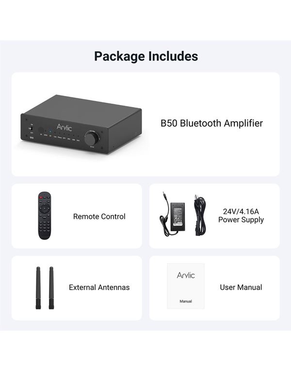 Ο Arylic B50 Bluetooth Ενισχυτής σας επιτρέπει να μεταδίδετε εύκολα ήχο από το κινητό, το tablet, τον υπολογιστή ή την τηλεόρασή σας σε παθητικά ηχεία, προσφέροντας ήχο υψηλής ανάλυσης σε κάθε χώρο. Υποστηρίζει aptX, aptX HD, aptX LL και SBC και λειτουργεί ως πομπός και δέκτης Bluetooth, συμβατός με τηλεοράσεις, βινύλια, AV receivers, subwoofer, USB και άλλα.