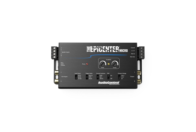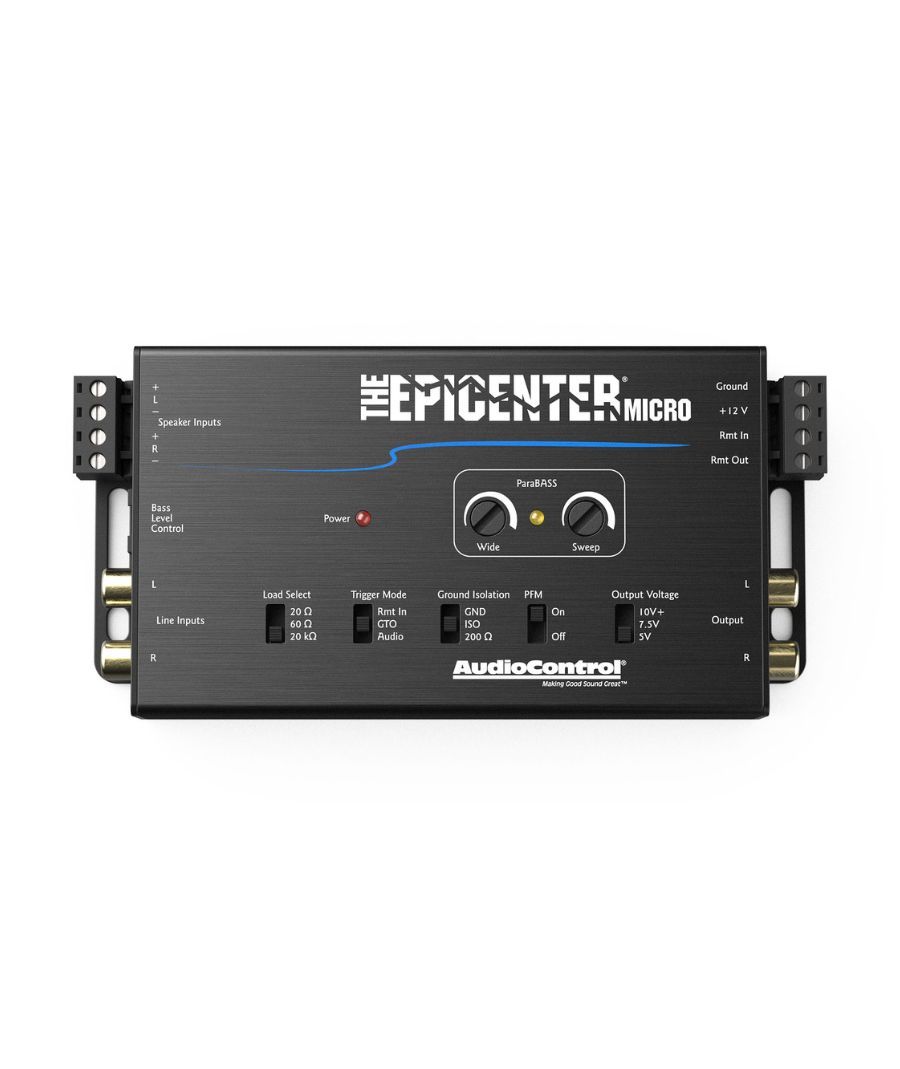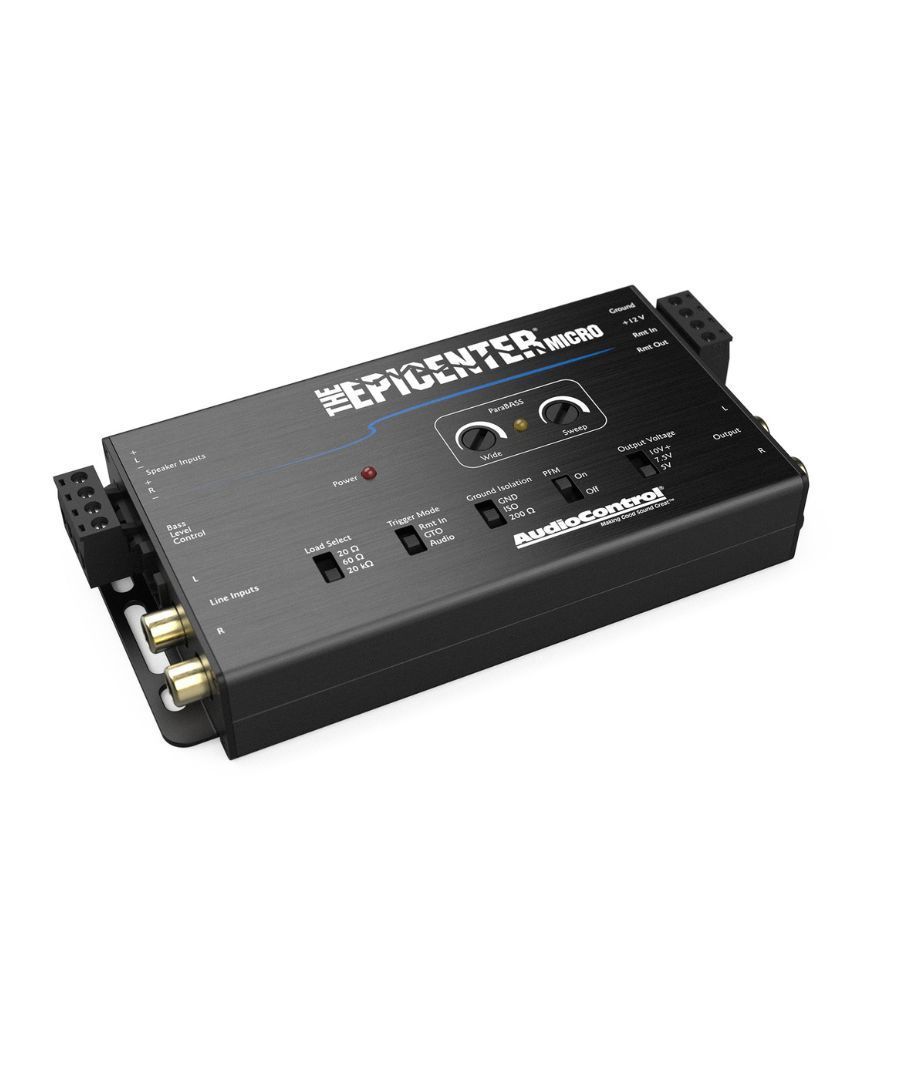 Το Epicenter Micro συνδυάζει τη θρυλική ψηφιακή αποκατάσταση μπάσων του AudioControl με παγκοσμίου φήμης δυνατότητες ενσωμάτωσης OEM. Διαθέτοντας μια βαθμίδα εισόδου σε επίπεδο ηχείου με επιλέξιμα φορτία σύνθετης αντίστασης, καθώς και παραδοσιακές εισόδους σε επίπεδο γραμμής, το Epicenter Micro αναδεικνύει τα καλύτερα μπάσα σε οποιοδήποτε σύστημα. Οι λειτουργίες ενεργοποίησης περιλαμβάνουν το παραδοσιακό τηλεχειριστήριο +12V, το GTO™ Signal Sense και το Audio Sense. Το φίλτρο PFM Subsonic μπορεί να παρακαμφθεί για τους πραγματικά αφοσιωμένους, και η ρύθμιση τάσης εξόδου 10V+ καλεί μόνο τους πιο γενναίους ανάμεσά μας. Χρησιμοποιήστε το συμπεριλαμβανόμενο τηλεχειριστήριο ACR-4 για να ρυθμίσετε ανεξάρτητα την αποκατάσταση μπάσων και το επίπεδο εξόδου.