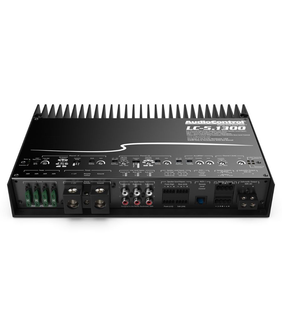 Το LC-5.1300 φέρνει πέντε κανάλια ηχητικής καθαρότητας και πρωτοφανή επίπεδα ισχύος σε μια πλήρη σειρά ενισχυτών πολλαπλών καναλιών και subwoofer από την AudioControl. Διαθέτοντας οκτώ active speaker level inputs, έξι line level inputs, το LC-5.1300 είναι γεμάτο με έξυπνα χειριστήρια ρύθμισης για high-pass, band-pass, and low-pass φίλτρα, αυτόματη και επιλέξιμη άθροιση σήματος και AccuBASS. Ενσωματώνεται άψογα με το OEM ή το aftermarket ηχοσύστημά σας, με τη λύση ενός ενισχυτή, η οποία θα μεταμορφώσει τον ήχο σας με εντυπωσιακά επίπεδα ισχύος που παρέχονται στα ηχεία και τους συνδρομητές σας. Προσθέστε το προαιρετικό τηλεχειριστήριο ACR-1 για έλεγχο στάθμης.Configurable as 5 or 3 channel amplifier4 x 200 watts + 1 x 500 watts @ 2 ohms4 x 100 watts + 1 x 300 watts @ 4 ohms400 watts @ 4 ohms bridgedAccuBASS® ProcessingMILCTM Maximum Input Level Control (Patent Pending)GTOTM Signal Sense3-way Independent Linkwitz-Riley Alignment crossoversSummable active speaker-level inputs (8 channels) for OEM integration6 preamp inputsPFM Subsonic FilterOptional ACR-1 assignable remote controlSolid One-Piece Aluminum ChassisΧαρακτηριστικά: