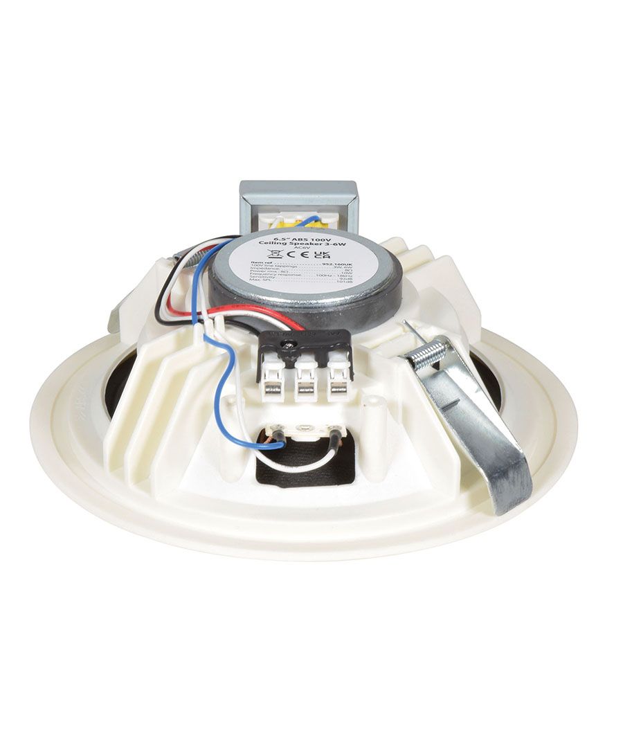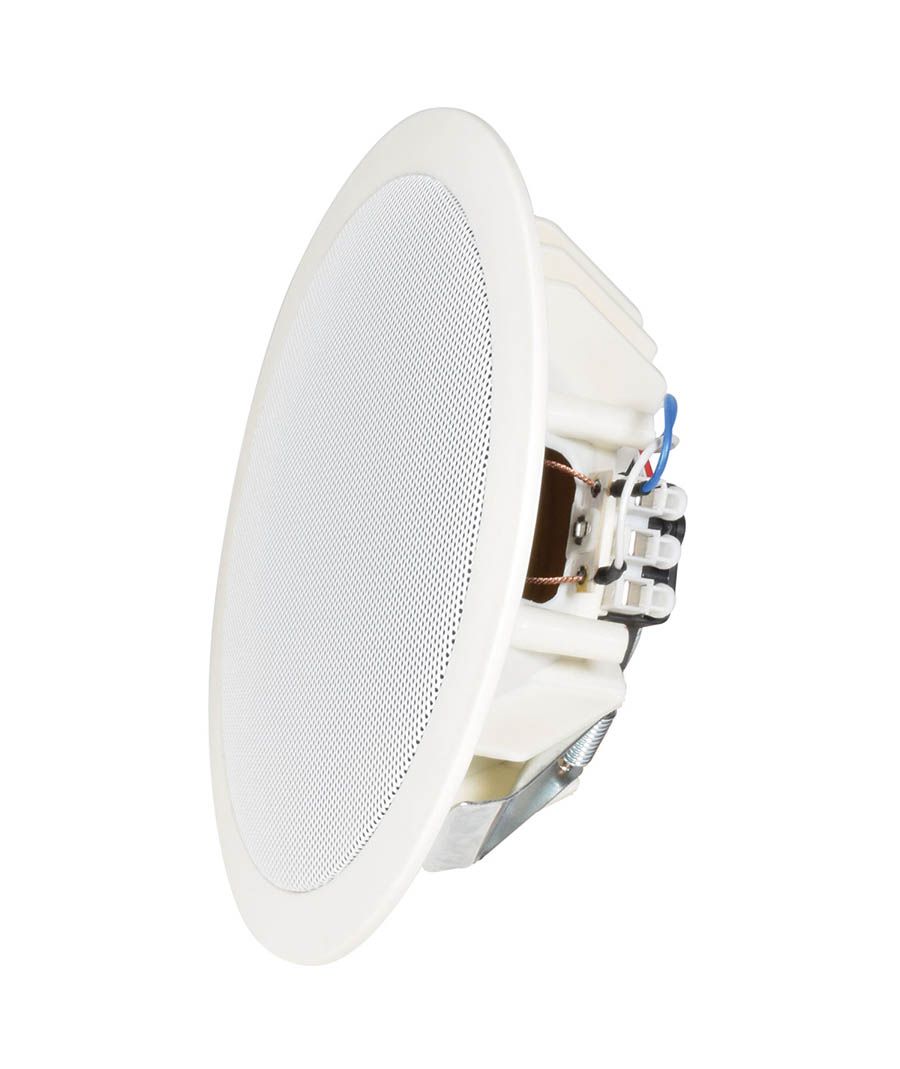 Χωνευτό ηχείο οροφής μεABS πλαίσιο και σασί και γρίλια από χάλυβα, με σφιγκτήρες ελατηρίων εύκολης τοποθέτησης. Ενισχυμένο με χάρτινο οδηγό διπλού κώνου 6,5" για αναπαραγωγή ήχου πλήρους εμβέλειας. Λειτουργία σε 100V line με επιλογές 3W και 6W. Σχεδιασμένο για διανομή μουσικής και ομιλίας σε κτίρια με ψευδοροφές.Οδηγός διπλού κώνου για εκτεταμένο εύρος συχνοτήτωνΧαρακτηριστικά: