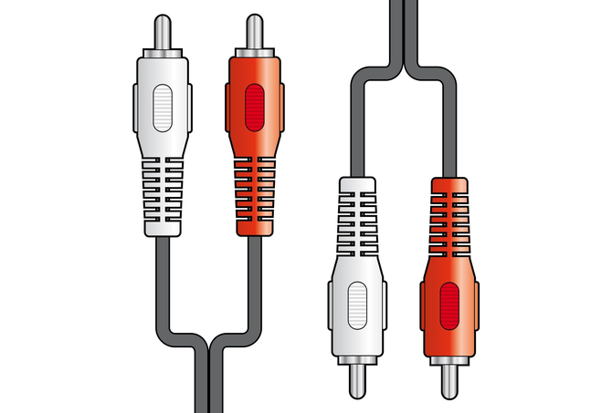 Δύο βύσματα RCA phono σε δύο βύσματα RCA phono με διπλό καλώδιο ήχου με 2.6 mmØ κωδικοποιημένο χρώμα για στερεοφωνική σύνδεση.