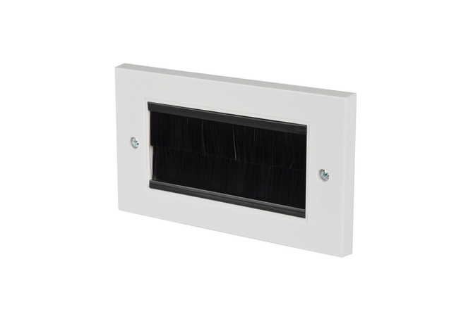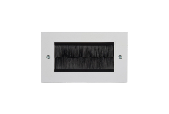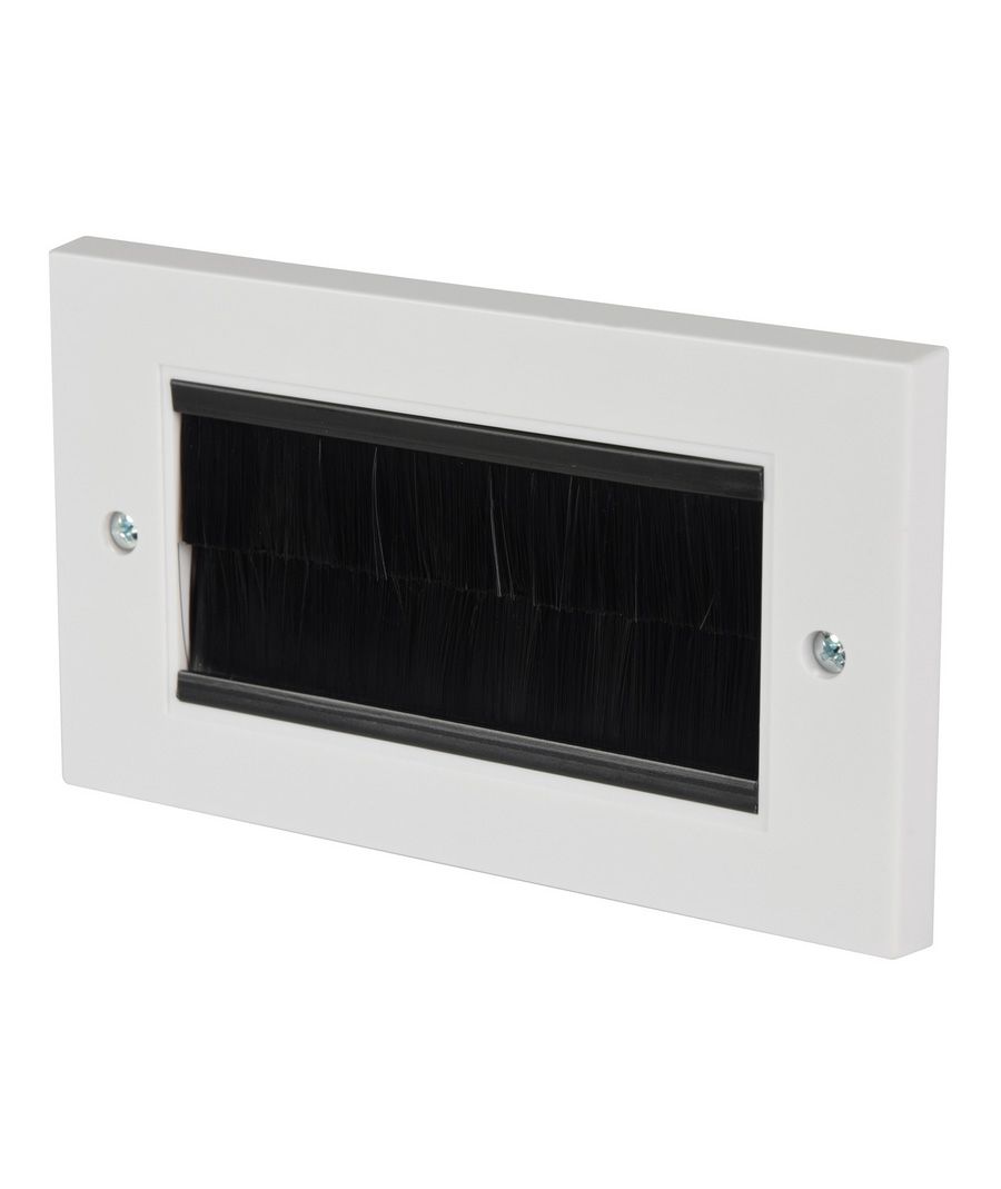 Πλαστική ταπετσαρία 2 συμμοριών με διάφραγμα γεμάτο βούρτσα που επιτρέπει τη διέλευση καλωδίου για εξοπλισμό AV.Τοποθετήστε κατευθείαν στον τοίχο ή σε ένα τυπικό Αγγλικού τύπου 2 gang back box (δεν παρέχεται)Μεγάλο άνοιγμα που επιτρέπει την τροφοδοσία των συνδέσμωνΔύο βούρτσες για να καλύψει πλήρως το άνοιγμα για ένα προσεγμένο φινίρισμαΧαρακτηριστικά: