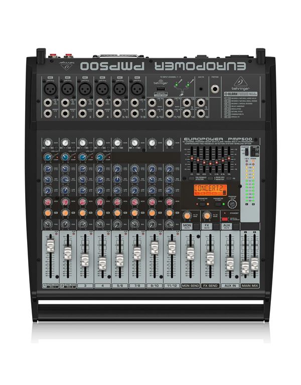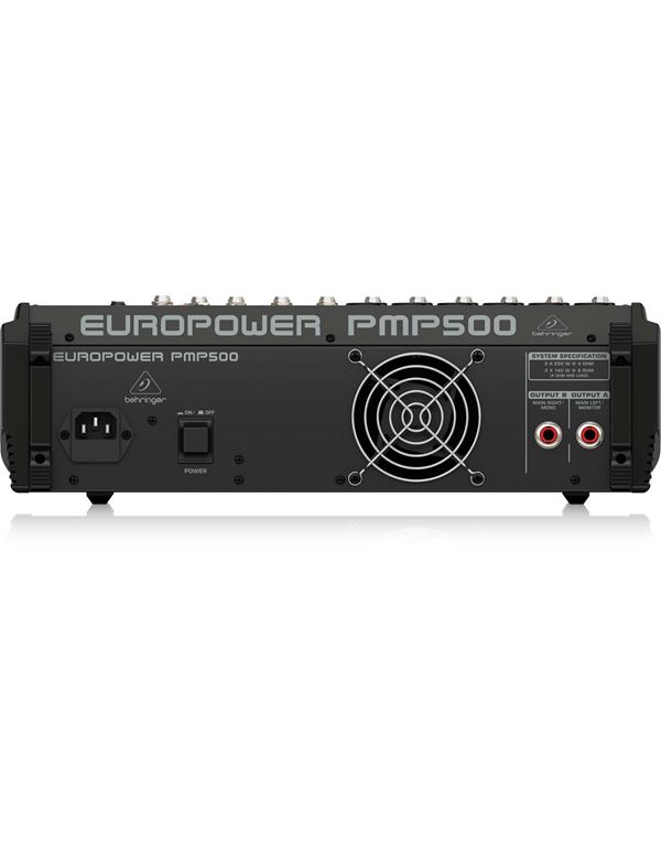 Ο PMP500 διαθέτει τεράστια ισχύ (2 x 250 Watts, selectable as stereo or dual mono ), ενώ διατηρεί μια απίστευτη αναλογία ισχύος προς βάρος. Xρησιμοποιεί τεχνολογία Class-D υψηλής απόδοσης και ένα υπερσύγχρονο τροφοδοτικό λειτουργίας switch-mode , το οποίο μειώνει σημαντικά το βάρος και τη θερμότητα. Το PMP500 12 καναλιών διαθέτει 6 ενσωματωμένους προενισχυτές μικροφώνου XENYX ποιότητας στούντιο,(2 από τα οποία δέχονται επίσης τα ψηφιακά ασύρματα μικρόφωνα ULM, διαθέσιμα χωριστά), τους “one-knob” compressors, 4 στερεοφωνικά κανάλια, συν 2 πρόσθετες στερεοφωνικές εισόδους και είσοδο Aux 1/8" για μέγιστη ευελιξία .