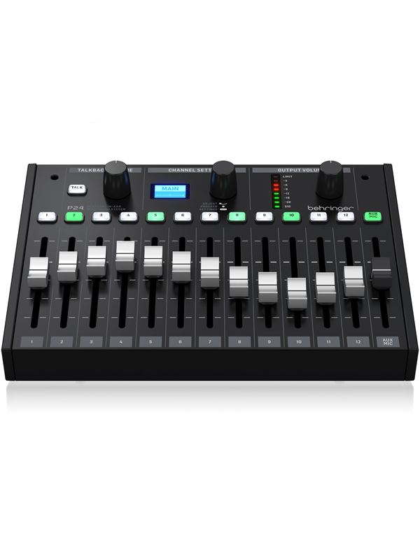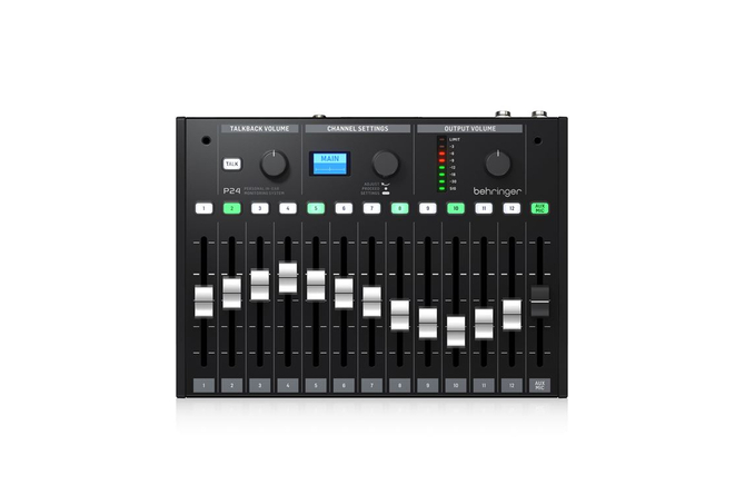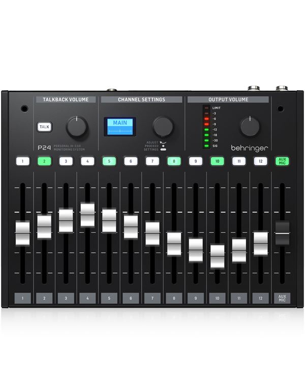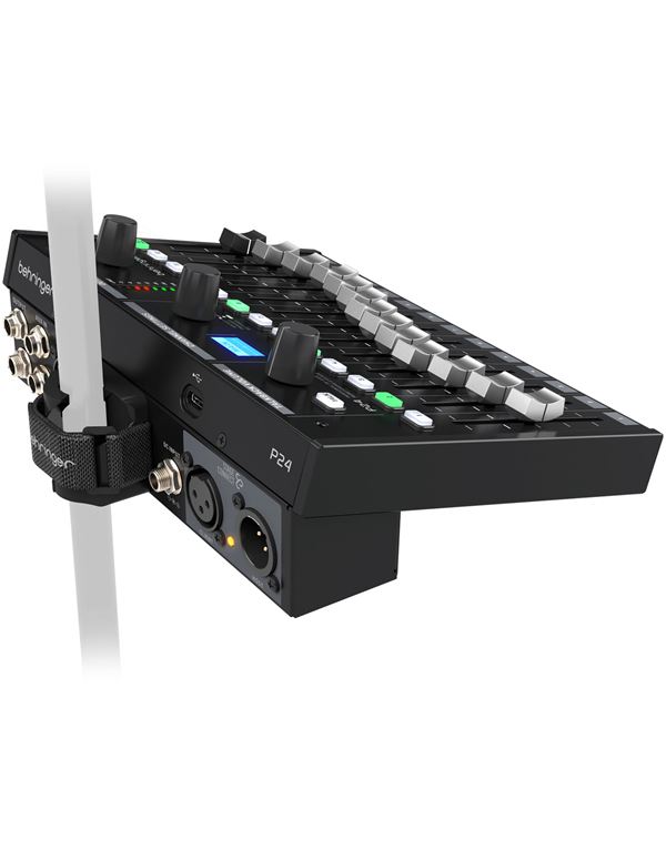Το Behringer P24 είναι ένας μικρός σε μέγεθος προσωπικός σχεδιασμένος για συστήματα με StageConnect, ιδανικός για ζωντανές εμφανίσεις και στούντιο. Προσφέρει 12 στερεοφωνικές ομάδες, τοπική είσοδο aux και ομαλούς 60mm faders για γρήγορο και εύχρηστο έλεγχο της μίξης. Τα ενσωματωμένα μικρόφωνα ambient και το εφέ WING reverb μειώνουν την αίσθηση απομόνωσης κατά τη χρήση in-ear ακουστικών, ενώ το Tilt-EQ και ο limiter εξασφαλίζουν γρήγορη επεξεργασία ήχου και ασφαλή επίπεδα έντασης.