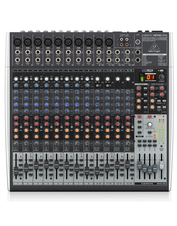 Μίκτης υψηλής ποιότητας 24 εισόδων 4/2-Bus με προενισχυτές μικροφώνου και compressors XENYX, british EQ, επεξεργαστής πολλαπλών εφέ 24-Bit και κάρτα ήχου USB .