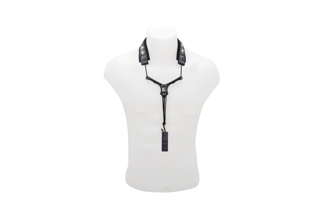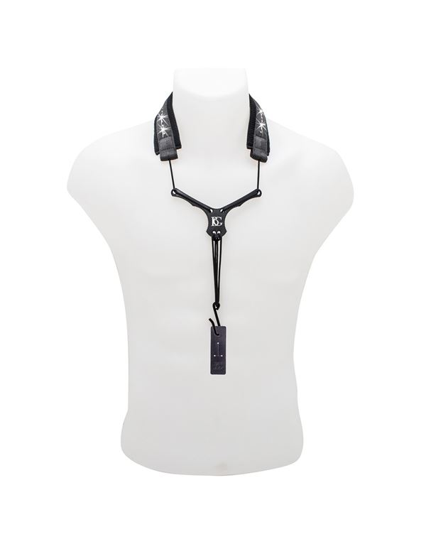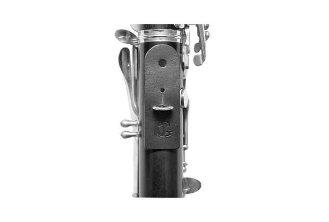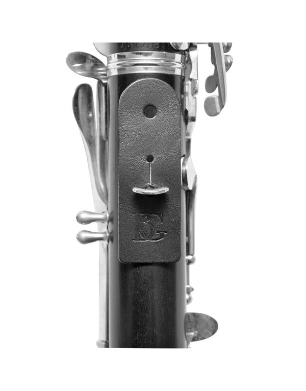 Κομψή ζώνη για κλαρίνο με κρύσταλλα Swarovski, μαλακή επένδυση από σφουγγάρι, μαύρη προέκταση από συνθετικό υλικό ABS, ελαστική, μεταλλικό άγκιστρο και με 2 δερμάτινους συνδέσμους.