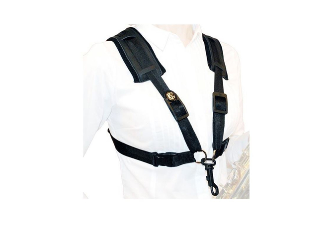 BG S40CSH, Zώνη πλάτης σαξόφωνου ‘‘comfort’’ για άντρες, κανονικό μέγεθος, πλήρως ρυθμιζόμενη, με έξτρα προστατευτικά αναπαυτικά μαξιλάρια για τον ώμο, πλαστικό άγκιστρο, εξαιρετικής κατασκευής ανθεκτικό νάιλον, χρώμα μαύρο.