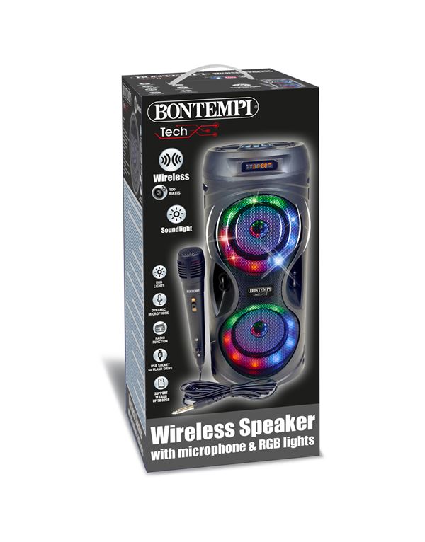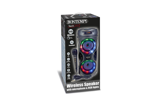 Διαθέτει υποδοχή μικροφώνου με εφέ για φωνητικά και εφέ φωτισμού LED που αναβοσβήνει στο ρυθμό της μουσικής (παρέχεται μικρόφωνο με καλώδιο στην συσκευασία του).