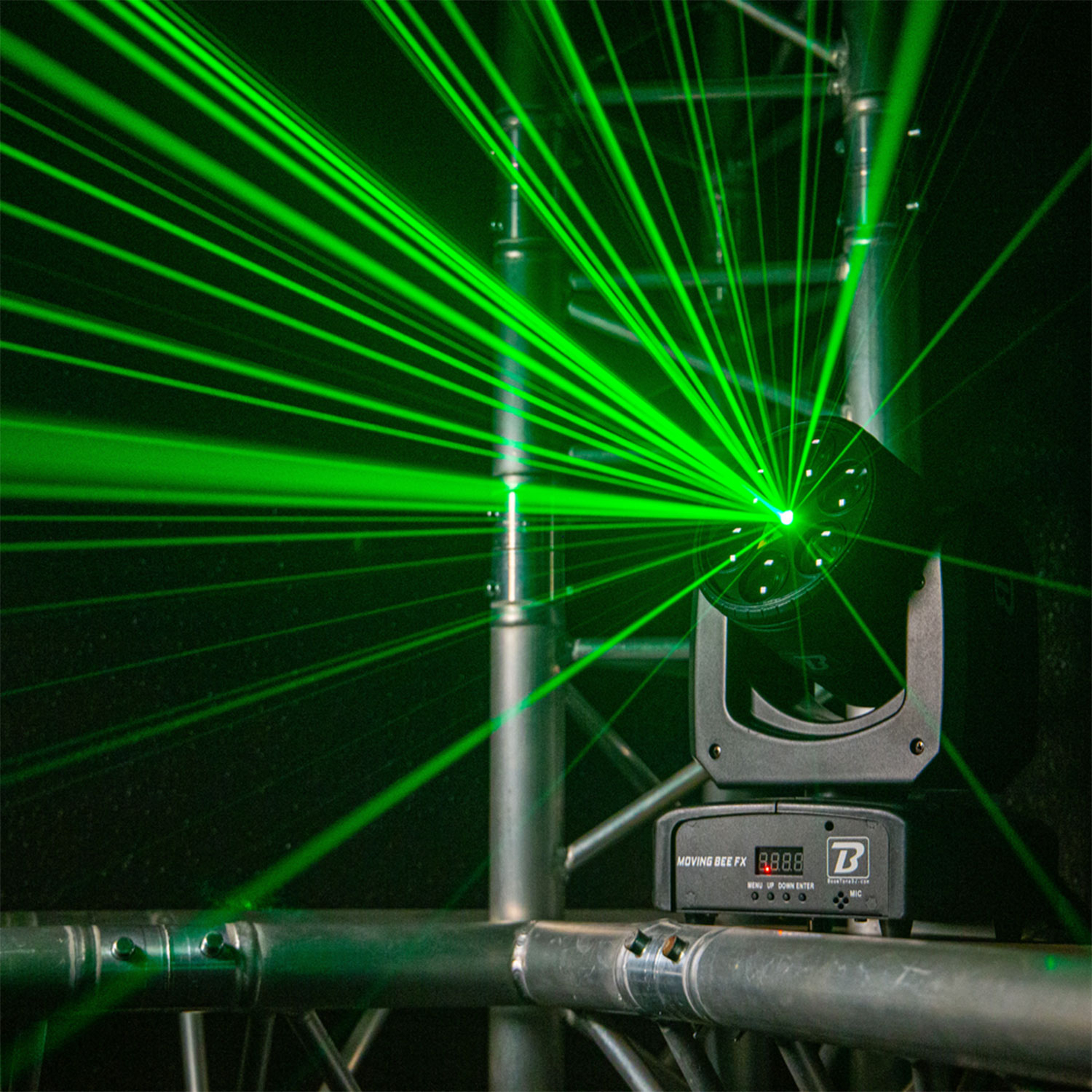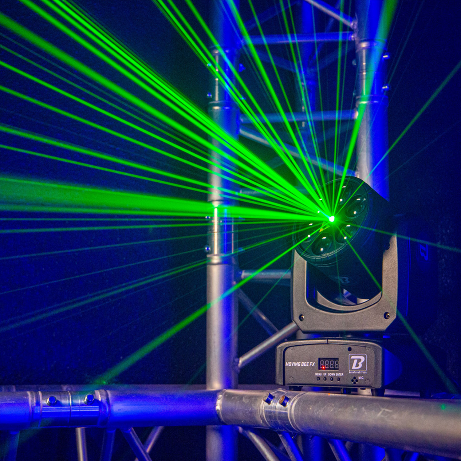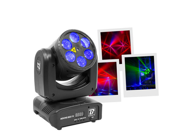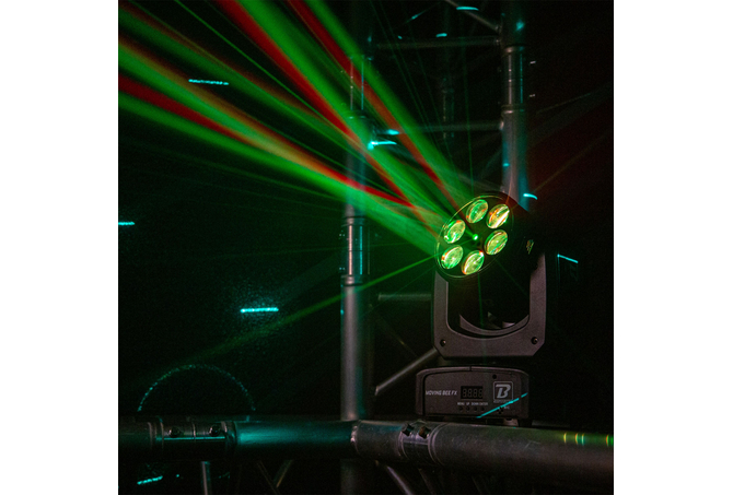 Το BoomTone DJ Moving Bee FX-LZR είναι μια κινούμενη κεφαλή φωτισμού LED που συνδυάζει εντυπωσιακά περιστρεφόμενα εφέ με έναν πράσινο λέιζερ, ιδανική για να ζωντανέψει τις εκδηλώσεις σας. Είναι εξοπλισμένη με 6 λυχνίες LED 10W CREE RGBW 4-σε-1 υψηλής φωτεινότητας και έναν πράσινο λέιζερ 50 mW στα 515nm.