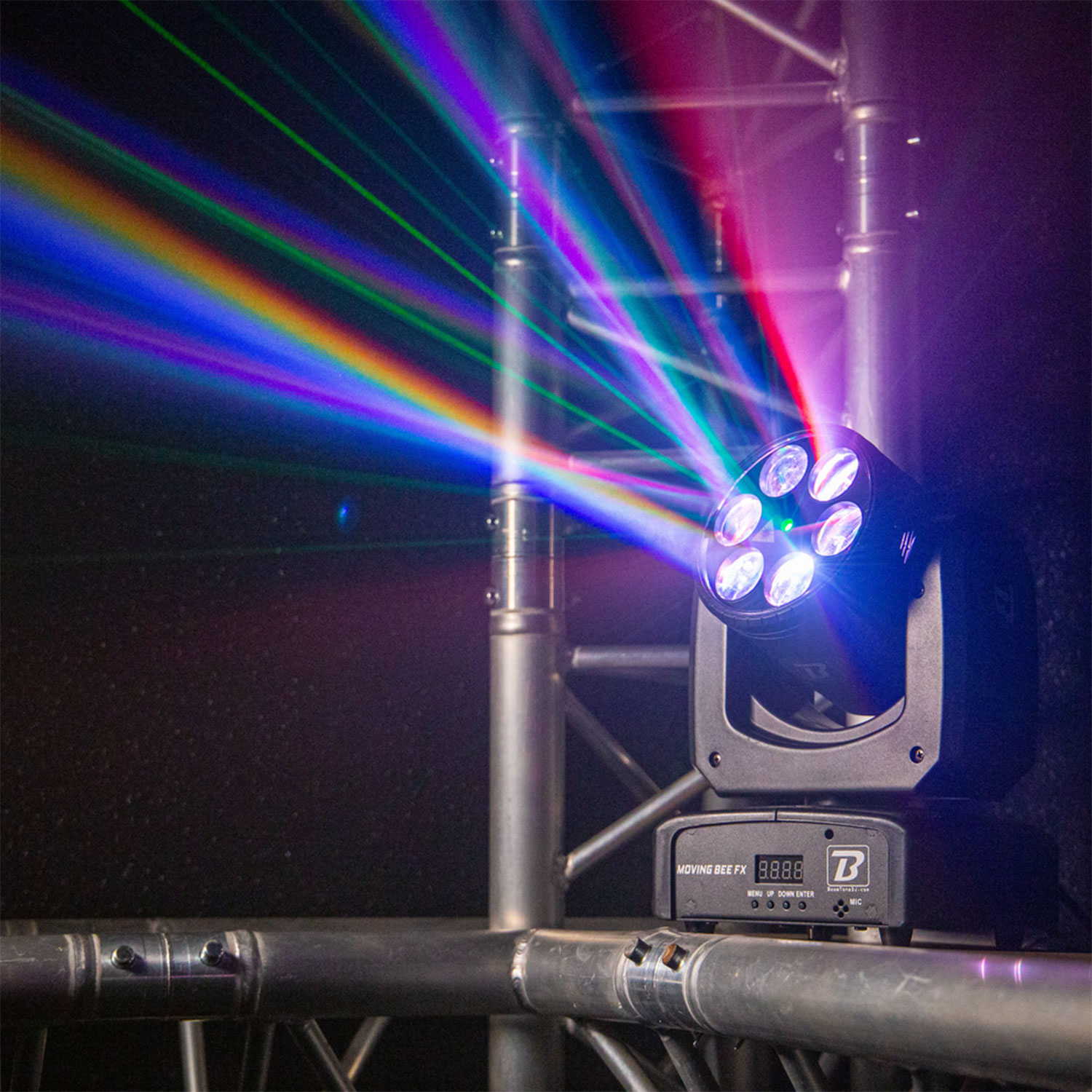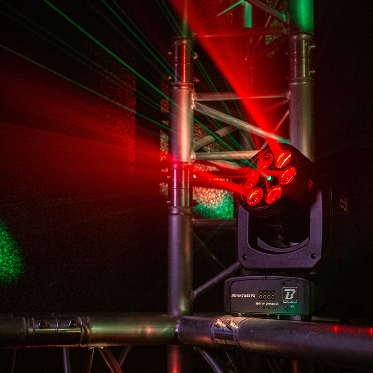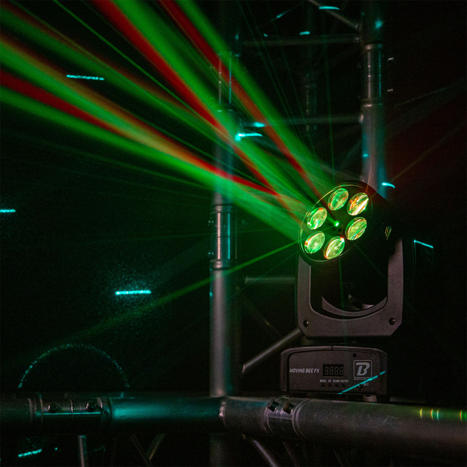 Το BoomTone DJ Moving Bee FX-LZR είναι μια κινούμενη κεφαλή φωτισμού LED που συνδυάζει εντυπωσιακά περιστρεφόμενα εφέ με έναν πράσινο λέιζερ, ιδανική για να ζωντανέψει τις εκδηλώσεις σας. Είναι εξοπλισμένη με 6 λυχνίες LED 10W CREE RGBW 4-σε-1 υψηλής φωτεινότητας και έναν πράσινο λέιζερ 50 mW στα 515nm.