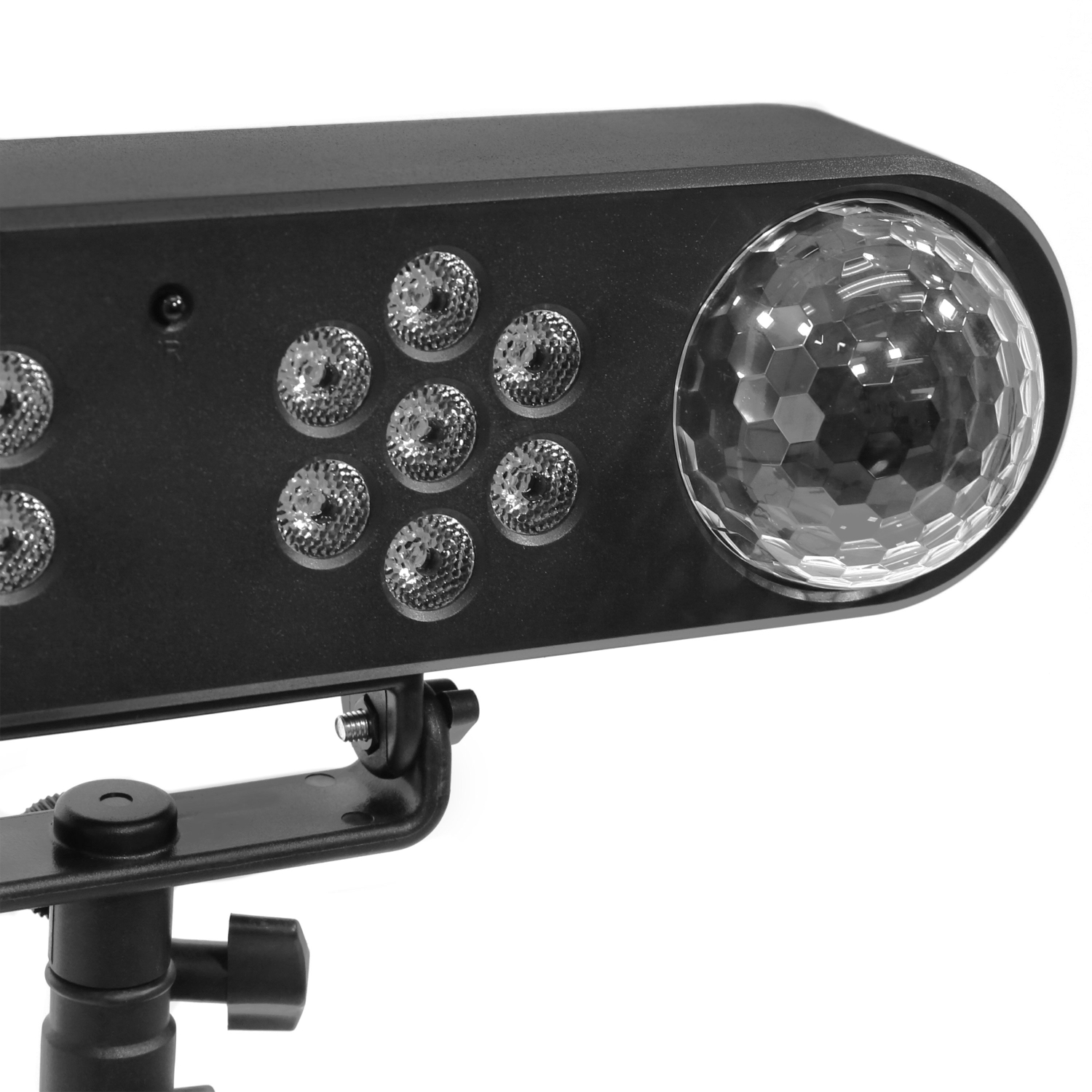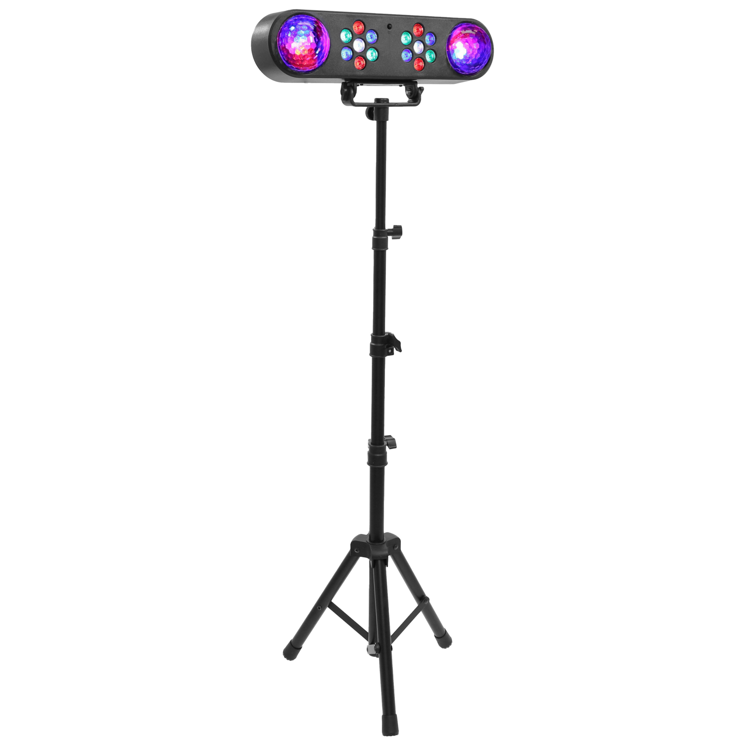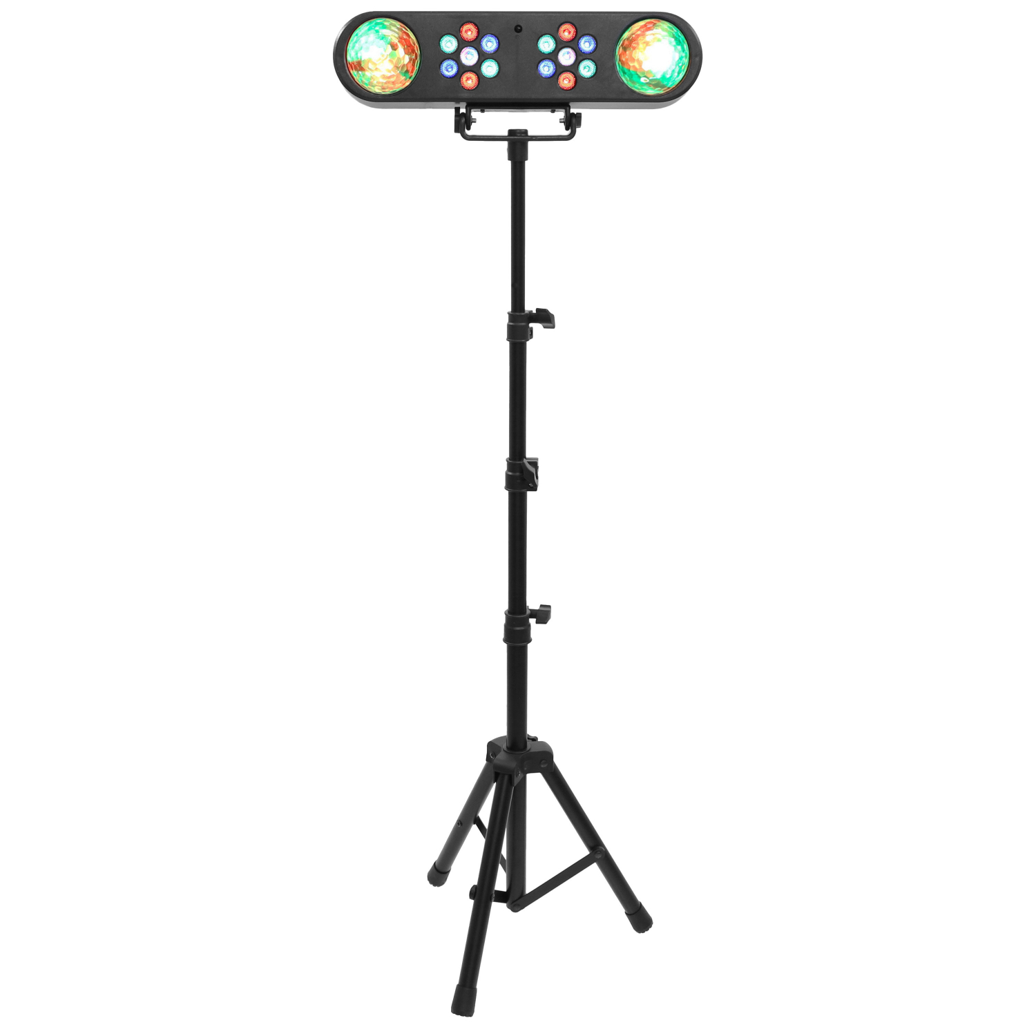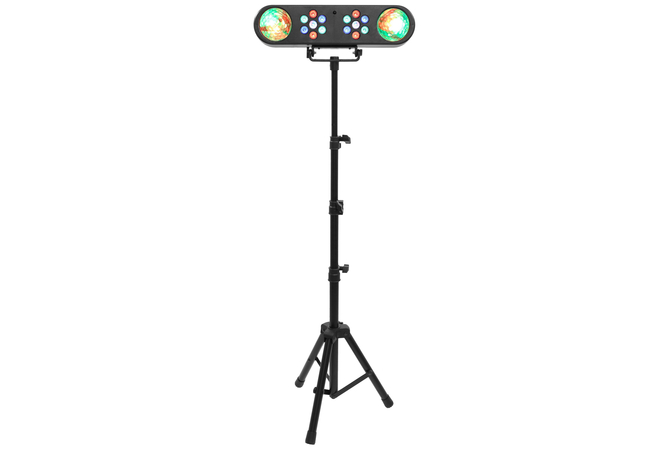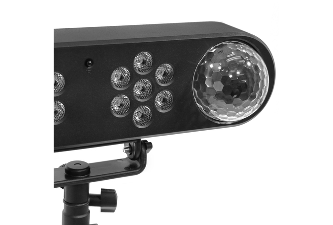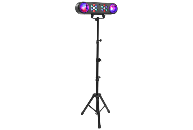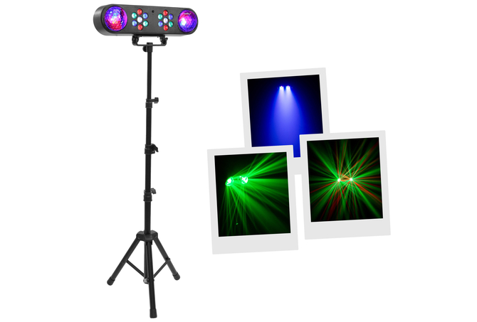 Το σετ περιλαμβάνει ένα εφέ RGB πολλαπλών ακτίνων και δύο έγχρωμες μπάλες LED τοποθετημένες σε γραμμική βάση, ένα μεταλλικό στήριγμα τριπόδου στο οποίο τοποθετείται η μπάρα, καθώς και ένα ασύρματο τηλεχειριστήριο υπερύθρων.