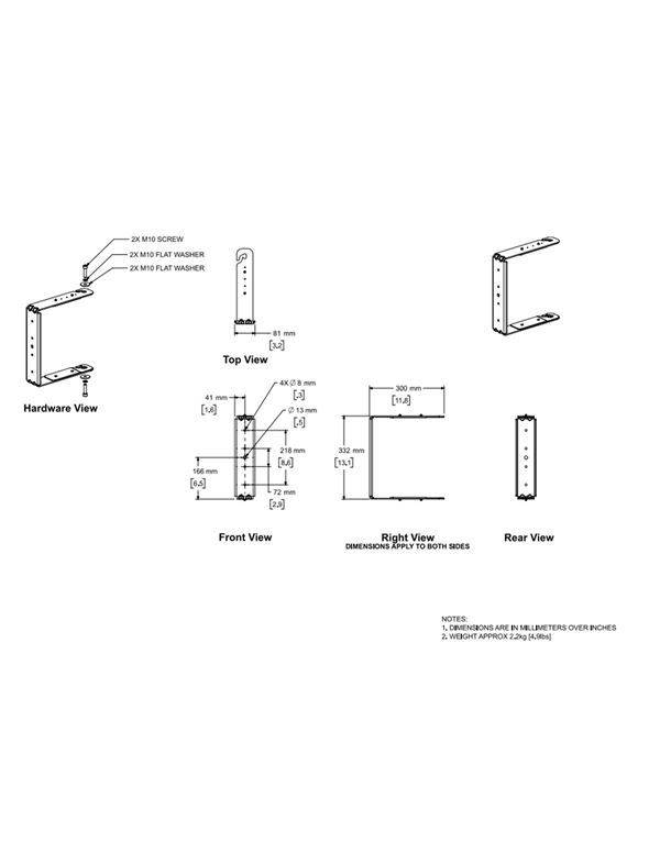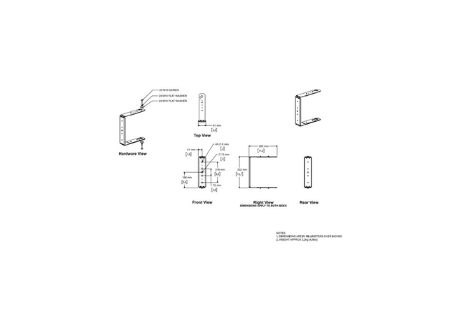Ο βραχίονας ταιριάζει (σπείρωμα M10 x 20 mm) στο πλάι του μεγαφώνου AMM108, συνοδεύεται από τις απαραίτητες βίδες για την τοποθέτηση του βραχίονα U στο μεγάφωνο και δεν προορίζεται για μόνιμη εξωτερική εγκατάσταση.