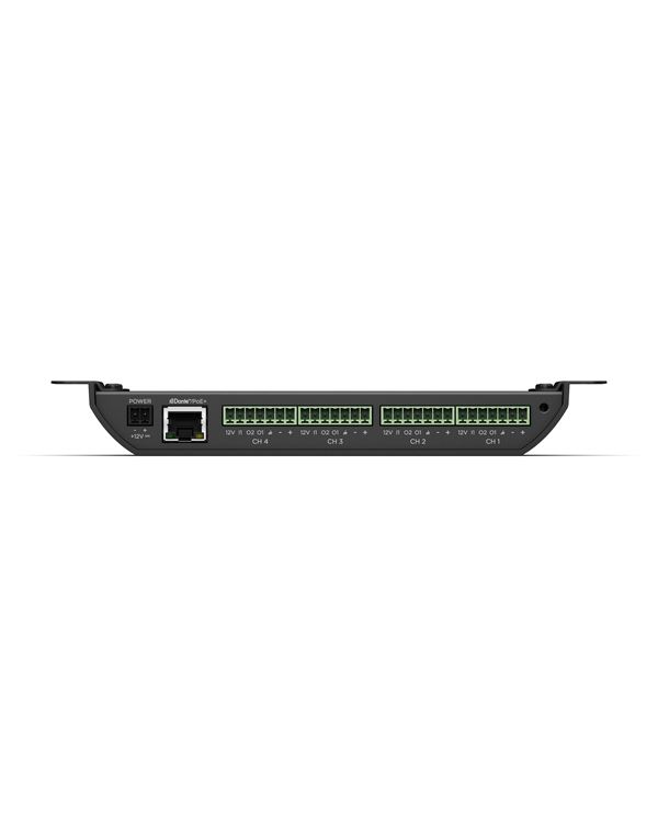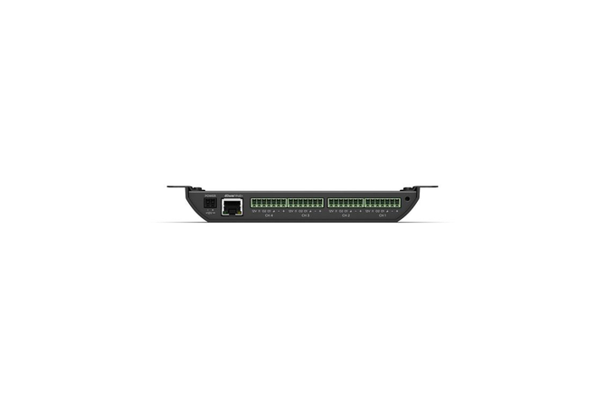 Δυνατότητα παροχής τροφοδοσίας και μέσω DC τροφοδοτικού και επιπλέον Daisy-Chainable Power Output για τροφοδοσία πολλαπλών μονάδων. Τέσσερα διαφορετικά gain stages (0 / +15 / +30 / 45dB) για κάθε είδους σήμα και ξεχωριστή ρύθμιση Gain ανα κανάλι μέσω του ControlSpace® Designer. Διαθέτει 2η θύρα Dante για Daisy chain πολλών μονάδων. Phanton Power 48V. Αναλογικές συνδέσεις τύπου Euroblock.