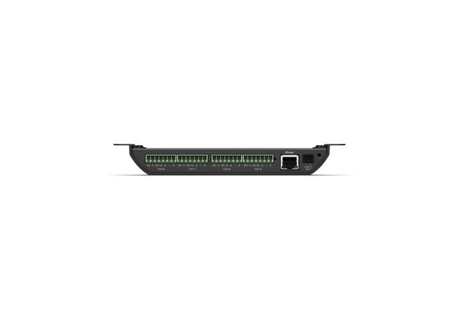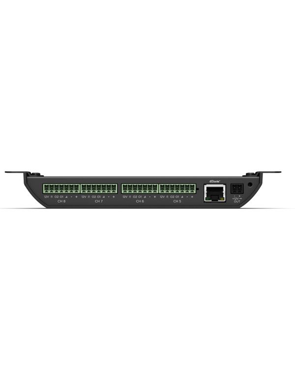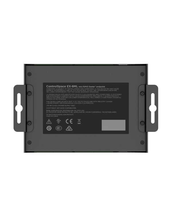 Το ControlSpace EX-8ML είναι ένα Small Form Factor Dante Interface που διαθέτει 8 εισόδους (Mic/Line) προσφέροντας την ιδανική και προσιτή λύση για επέκταση των Dante υποστηριζόμενων επεξεργαστών ControlSpace για κάθε Dante δίκτυο. GPΟ 16 καναλιών και GPI 8 καναλιών για λειτουργία paging μικροφώνων. Το μικρό μέγεθος και η PoE+ δυνατότητα τροφοδοσίας, καθιστά ιδιαίτερα εύκολη την τοποθέτησή της μονάδας κυριολεκτικά παντού (wall mount brackets) και επίσης πολύ κοντά στις πηγές σήματος, εξαλείφοντας την ανάγκη για μεγάλα μήκη καλωδίων. Έλεγχος, δρομολόγηση και παραμετροποίηση με την χρήση της εφαρμογής ControlSpace® Designer. Δυνατότητα παροχής τροφοδοσίας και μέσω DC τροφοδοτικού και επιπλέον Daisy-Chainable Power Output για τροφοδοσία πολλαπλών μονάδων. Τέσσερα διαφορετικά gain stages (0 / +15 / +30 / 45dB) για κάθε είδους σήμα και ξεχωριστή ρύθμιση Gain ανα κανάλι μέσω του ControlSpace® Designer. Διαθέτει 2η θύρα Dante για Daisy chain πολλών μονάδων. Phanton Power 48V. Αναλογικές συνδέσεις τύπου Euroblock. Ανάλυση 24bit/48kHz. Υποστηρίζεται από το προαιρετικό παρελκόμενο ControlSpace EX Endpoint Microphone Extension Cable.