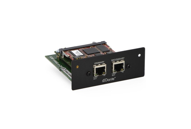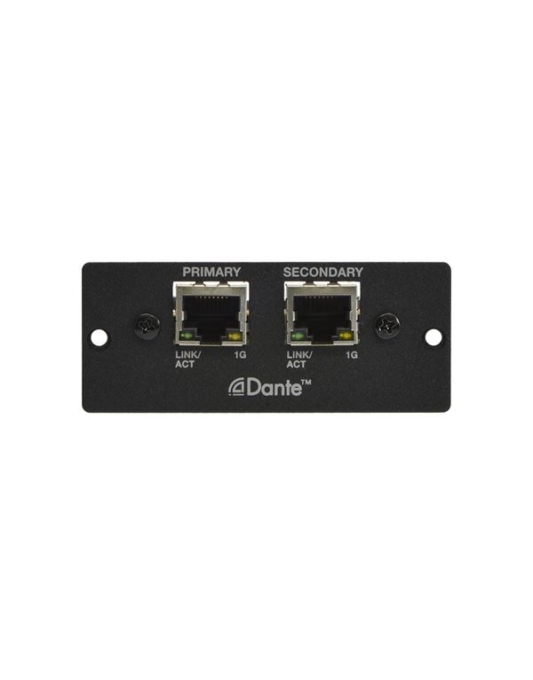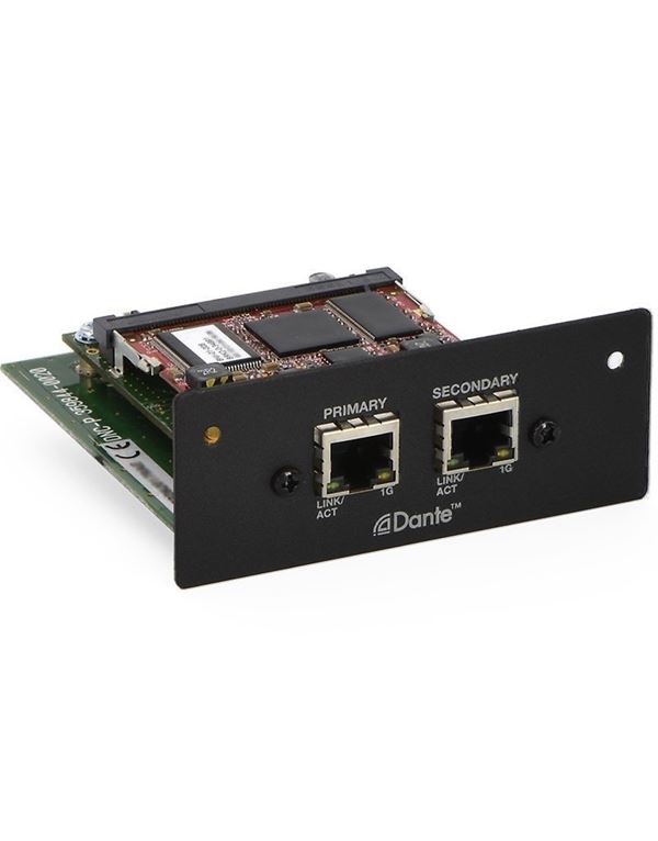 Η κάρτα δικτύου Dante για επαγγελματικούς ενισχυτές ισχύος PowerMatch παρέχει 8 κανάλια εισόδου ψηφιακού ήχου low latency χρησιμοποιώντας την δικτυακή λύση Dante από την Audinate®. Οκτώ κανάλια εξόδου είναι διαθέσιμα για διαγνωστική παρακολούθηση από απομακρυσμένες τοποθεσίες.