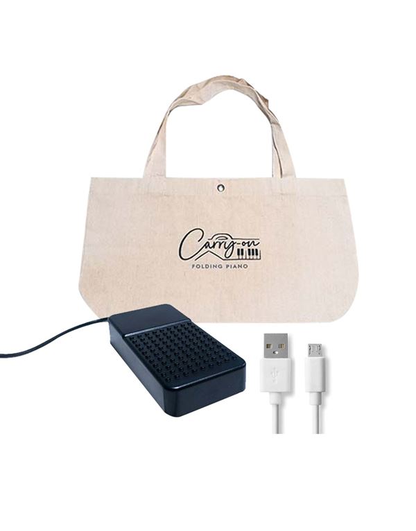 Περιλαμβάνονται αξεσουάρ: Sustain πεντάλ, καλώδιο φόρτισης USB και τσάντα μεταφοράς.