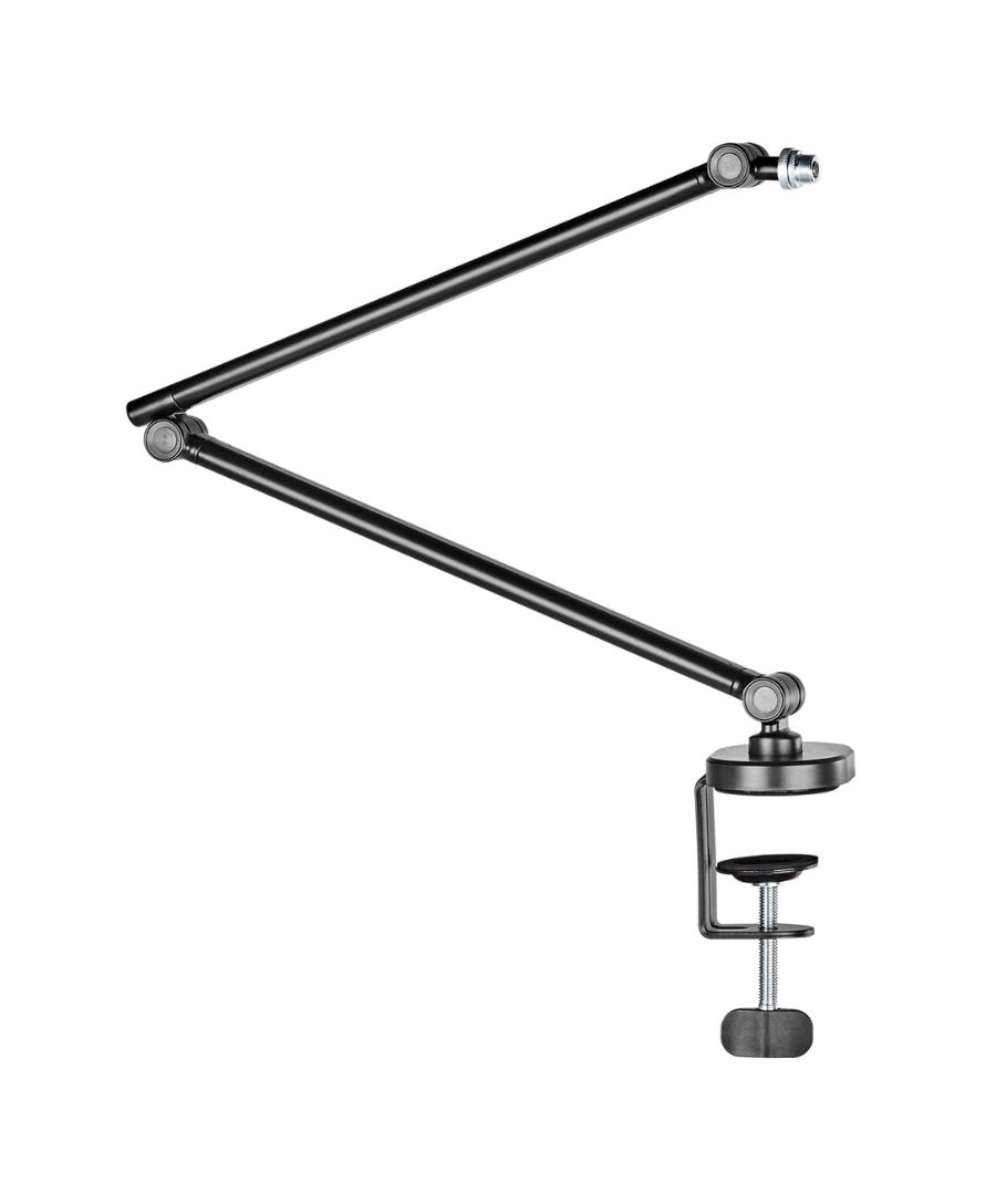 Λεπτός και μοντέρνος σχεδιασμόςΥποστηρίζει μικρόφωνα έως 1 κιλόΠεριλαμβάνει προσαρμογέα 3/8" έως 5/8" συμβατό με τα περισσότερα μικρόφωνα και άλλα αξεσουάρΠαρέχεται ιμάντας διαχείρισης καλωδίων για να διασφαλιστεί η τακτοποιημένη εγκατάσταση3 περιστρεφόμενες αρθρώσεις και περιστρεφόμενη κίνηση 180° που επιτρέπουν τη βέλτιστη τοποθέτησηΧαρακτηριστικά: