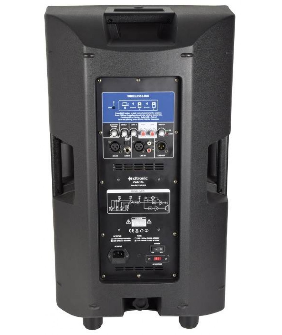 Ενεργά ηχεία PA με σύνδεση Bluetooth και δυνατότητα ασύρματης στερεοφωνικής σύνδεσης, που στεγάζονται σε ένα συμπαγές και ελαφρύ διαμορφωμένο περίβλημα PP. Οι ειδικά σχεδιασμένοι drivers χαμηλής και υψηλής συχνότητας τροφοδοτούνται από ψηφιακό κύκλωμα ενισχυτή για ισχυρή και ενεργειακά υψηλή απόδοση. Μία εναλλασσόμενη είσοδος Mic / Line και ξεχωριστή είσοδος γραμμής παρέχονται μαζί με ένα δέκτη Bluetooth για αναπαραγωγή από ένα smartphone ή tablet. Η ενότητα Bluetooth έχει επίσης μια λειτουργία σύνδεσης που επιτρέπει την ασύρματη σύνδεση σε ένα άλλο ηχείο σειράς CAB για να σχηματίσει ένα στερεοφωνικό ζεύγος.