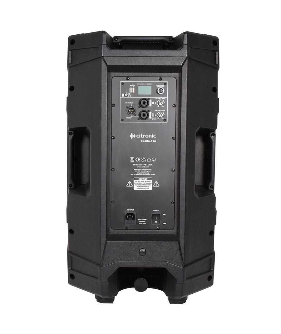 Ενεργό ηχείο ενίσχυσης ήχου με περίβλημα πολυπροπυλενίου και ενσωματωμένη μονάδα ενισχυτή κατηγορίας D. Κάθε ηχείο είναι εξοπλισμένο με έναν κύριο οδηγό εκτεταμένης συχνότητας και έναν οδηγό συμπίεσης τιτανίου για βέλτιστη ευκρίνεια. Η ισχύς από τον εσωτερικό διπλό ενισχυτή ελέγχεται από ένα εσωτερικό τμήμα DSP, προσφέροντας προκαθορισμένα προφίλ με crossover, EQ και δυναμική επεξεργασία για να ταιριάζουν στο υλικό του προγράμματος. Οι προσαρμοσμένες ρυθμίσεις μπορούν να δημιουργηθούν μέσω του ενσωματωμένου περιστροφικού κωδικοποιητή και της οθόνης με φωτισμό ή συνδέοντας τη μονάδα CLARA σε υπολογιστή ή φορητό υπολογιστή μέσω USB και πραγματοποιώντας επεξεργασία χρησιμοποιώντας την εφαρμογή λογισμικού ADU δωρεάν για λήψη. 2 σύνθετες είσοδοι στον πίσω πίνακα μπορούν να δεχτούν ισορροπημένο ή μη ισορροπημένο ήχο σε επίπεδο γραμμής με υποδοχή 6,3 mm ή σύνδεση XLR. Ένας ενσωματωμένος δέκτης Bluetooth® μπορεί να συζευχθεί με ένα smartphone και ο ήχος μπορεί να μεταδοθεί ασύρματα μέσω της εισόδου Α. Εκτός από μια είσοδο επιπέδου γραμμής για την είσοδο Β, υπάρχει ένας διακόπτης επιπέδου mic/line για την απευθείας σύνδεση μικροφώνου. Μέγιστη ηχητική επίδραση από ένα ελαφρύ και εύκολο στη διαχείριση ηχείο με καμπίνα.Διαχείριση ηχείων DSP με λογισμικό επεξεργασίαςΣυνδεσιμότητα BluetoothΔιενισχυτής κατηγορίας D υψηλής ισχύοςΚαμπίνα PP υψηλής ποιότητας με πλαϊνές & επάνω λαβέςΥποδοχή στήριξης 35 mmΧαρακτηριστικά: