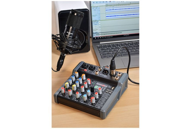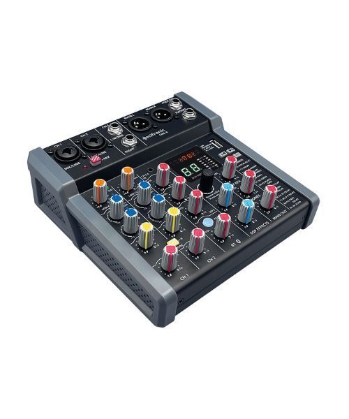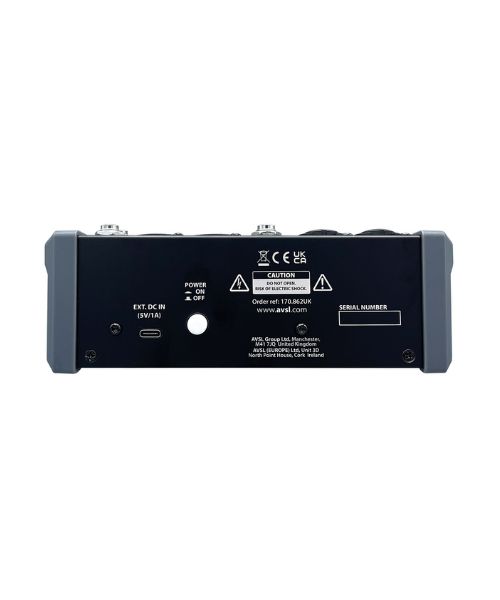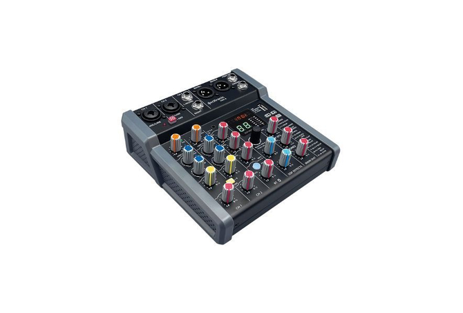 Συμπαγής μίκτης ήχου με 2 μονοφωνικά κανάλια εισόδου, stereo line input και επιπλέον minijack stereo input. Κάθε μονοφωνικό κανάλι mono mic/line διαθέτει είσοδο combo XLR/jack με επιλογή +48V phantom power που ενεργοποιείται ανά ζεύγη για τις εισόδους XLR. Κάθε κανάλι mic/line διαθέτει έλεγχο Gain για την προσαρμογή της πηγής εισόδου και διακόπτη low-cut για την αποκοπή θορύβων ή χειριστικών ήχων από μικρόφωνα. Κάθε μονοφωνικό κανάλι διαθέτει επίσης ελέγχους High/Low EQ και έλεγχο επιπέδου FX. Ζεύγη μονοφωνικών καναλιών μπορούν να συνδεθούν για να λειτουργήσουν ως ζεύγος στερεοφωνικού αριστερού και δεξιού καναλιού αν απαιτείται. Η ενσωματωμένη μονάδα εφέ DSP με ποδο-διακόπτη διαθέτει 99 προεπιλογές για εφέ καθυστέρησης, αντήχησης και τροποποίησης, κάθε μία από τις οποίες μπορεί να ρυθμιστεί χρησιμοποιώντας δύο ελέγχους παραμέτρων. Ο ενσωματωμένος δέκτης Bluetooth διαθέτει κουμπί ζεύξης με φωτισμό και ανεξάρτητο έλεγχο έντασης. Η θύρα USB τύπου Α στην επάνω επιφάνεια είναι για αναπαραγωγή αρχείων ήχου ή μπορεί να χρησιμοποιηθεί για εγγραφή των κύριων εξόδων σε συσκευή αποθήκευσης USB ή ως εξωτερική συσκευή ήχου όταν συνδεθεί σε φορητό υπολογιστή. Η έξοδος παρέχεται σε ζεύγος ισορροπημένων συνδέσεων XLR για χαμηλό θόρυβο και υψηλή ποιότητα για στούντιο ή ζωντανές παραστάσεις.Ενότητα εφέ DSP με 99 ρυθμιζόμενες προεπιλογέςUSB mp3 audio player/recorderΔέκτης Bluetooth με ανεξάρτητο έλεγχο έντασηςΣυσκευή ήχου PC/Mac και εξωτερική τροφοδοσία μέσω σύνδεσης USB ASwitchable +48V phantom powerΜονοφωνικές εισόδους μικροφώνου/γραμμής που μπορούν να συνδυαστούν σε στερεοφωνικόΙσορροπημένες είσοδοι XLR/JackΕίσοδοι στερεοφωνικής γραμμής και στερεοφωνική είσοδος minijackΠαρέχεται σε επενδυμένη τσάντα μεταφοράςΤροφοδοσία USB τύπου C