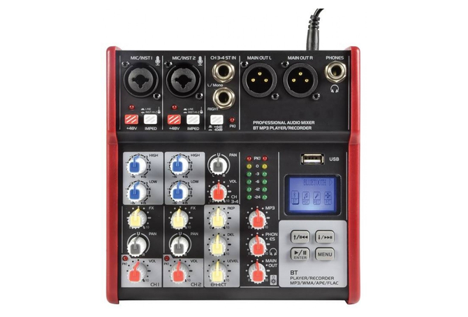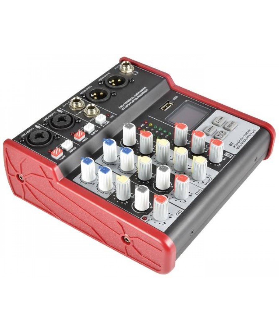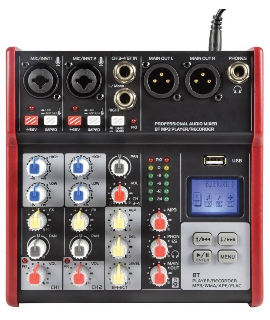 Ενσωματωμένη συσκευή αναπαραγωγής ήχου πολλαπλών μορφών USBΑσύρματη συνδεσιμότητα BTΕφέ ψηφιακής καθυστέρησης για φωνητικά ή όργαναΜεμονωμένη εναλλαγή + φανταστική ισχύ 48VΕνσωματωμένη λειτουργία εγγραφήςΠαρέχεται με τροφοδοτικό DCΧαρακτηριστικά:
