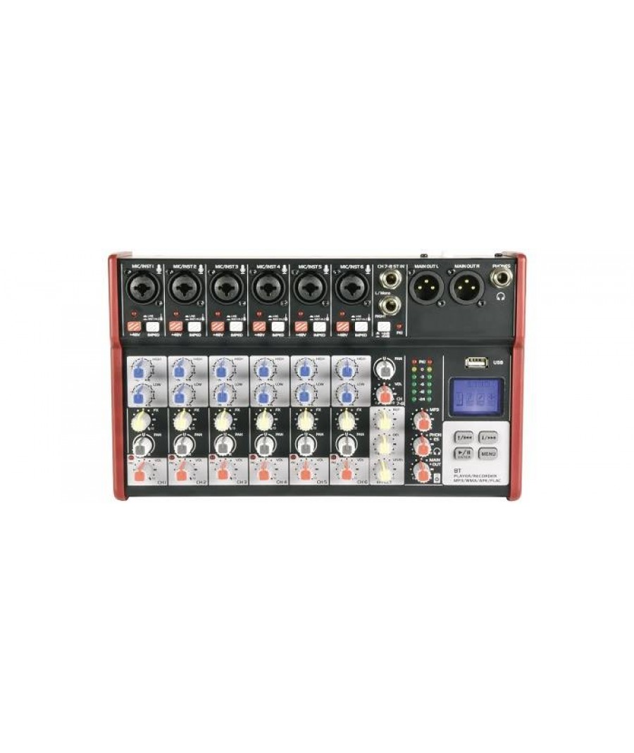 Κονσόλα μίξης μικρού μεγέθους με 6 μονοφωνικά κανάλια εισόδου και είσοδο στερεοφωνικής γραμμής (6 mono + 1 stereo). Κάθε μονοφωνικό κανάλι διαθέτει είσοδο σύνθετου XLR / υποδοχή με σύνθετη αντίσταση μικροφώνου / οργάνου και ισχύ + 48V για το XLR. Τα κανάλια εισόδου έχουν ρυθμιστές High / Low EQ και Pan και τα μονοφωνικά κανάλια έχουν επίσης το επίπεδο Effects για να μεταβάλλουν την ποσότητα εσωτερικής ψηφιακής καθυστέρησης που προστέθηκε για τα φωνητικά ή τα όργανα. Μια εσωτερική συσκευή εγγραφής με οπίσθιο φωτισμό μπορεί να δεχτεί ένα stick μνήμης USB που περιέχει συμπιεσμένα αρχεία ήχου σε διάφορες μορφές ή εναλλακτικά να συνδεθεί με smartphone μέσω Bluetooth για ασύρματη σύνδεση. Η έξοδος παρέχεται σε ζεύγος ισοσταθμισμένων συνδέσεων XLR και προσφέρει λειτουργία πολύ χαμηλού θορύβου για υψηλής ποιότητας στούντιο ή ζωντανές εμφανίσεις.