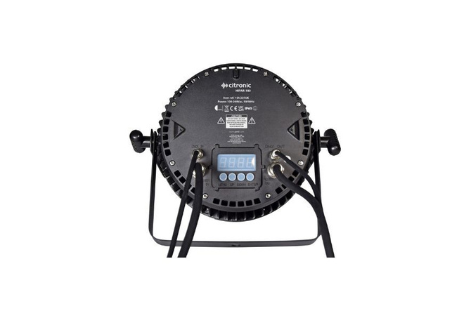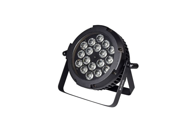 Υψηλής ισχύος LED PAR Can διακριτικό, εξοπλισμένο με 18 τεμάχια 10W υπερβολικά φωτεινά 6-in-1 COB LED, ενσωματωμένα σε IP65 ανθεκτική στις καιρικές συνθήκες θήκη, για εξωτερικές ή εσωτερικές εφαρμογές. Μπορεί να λειτουργήσει αυτόνομα μέσω των εσωτερικών αυτόματων προγραμμάτων ή μέσω ελεγκτή DMX512 αν απαιτείται πιο ακριβής έλεγχος. Προεγκατεστημένο με αδιάβροχες συνδέσεις ρεύματος και σήματος DMX για εύκολη σύνδεση. Παρέχεται με διαχωριστική βάση που μπορεί επίσης να χρησιμοποιηθεί ως βάση δαπέδου. Ιδανικό για πάρτι και εκδηλώσεις όπου απαιτείται φόντο χρώματος ή φωτισμός UV.Τροφοδοτείται από 18 x 10W 6-in-1 RGBWA-UV LEDΕσωτερικά αυτόματα, ενεργοποιούμενα από ήχο και στατικά προγράμματαΣυμβατό με DMX-512 σε 6 ή 10 κανάλιαΛεπτή θήκη IP65 αδιάβροχηΙδανικό για εξωτερικές και εσωτερικές εφαρμογές όπου απαιτείται χρωματικός φωτισμός ή φωτισμός UVΠροεγκατεστημένα αδιάβροχα καλώδια 1.2m IEC για ρεύμα και DMX (είσοδος και έξοδος)Παρέχεται με διπλή βάση τοποθέτησης για ανάρτηση ή ελεύθερη στήριξηΧαρακτηριστικά: