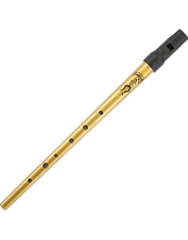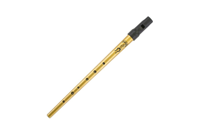 Φλογέρα Tinwhistle με μεταλλικό σώμα και πλαστικό επιστόμιο, σε χρυσαφί χρώμα.