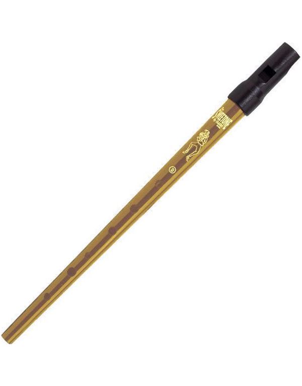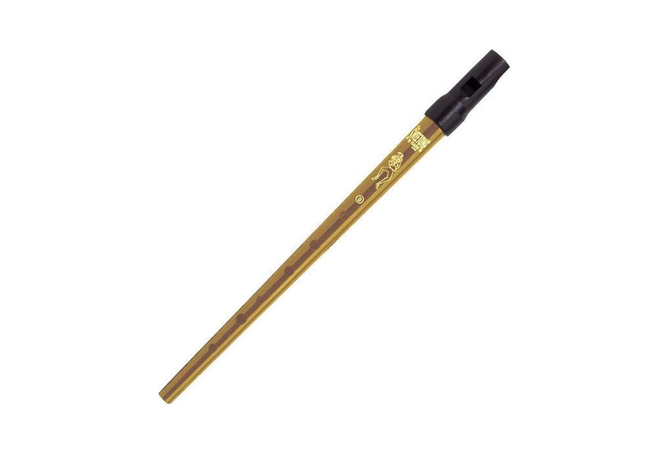 Φλογέρα Tinwhistle με μεταλλικό σώμα και πλαστικό επιστόμιο, σε χρυσαφί χρώμα.