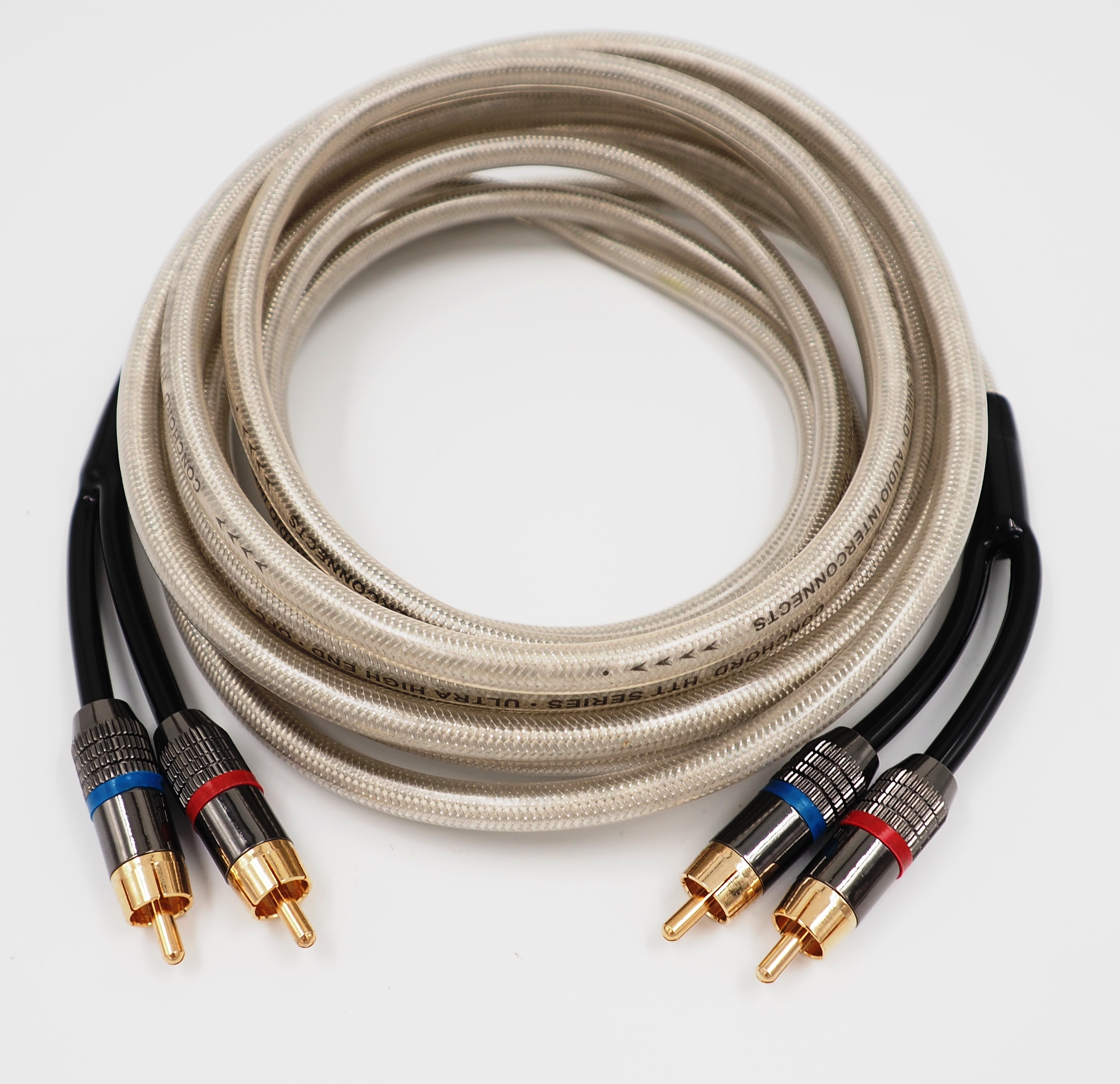 Ασημί RCA OFC ultra high end high twisted pair με τριπλή θωράκιση Clear Silver High End RCA Cable Twisted pair, Tripple shield, Zero noise protection Gold Plated metal, Hand soldered Cinch 5m