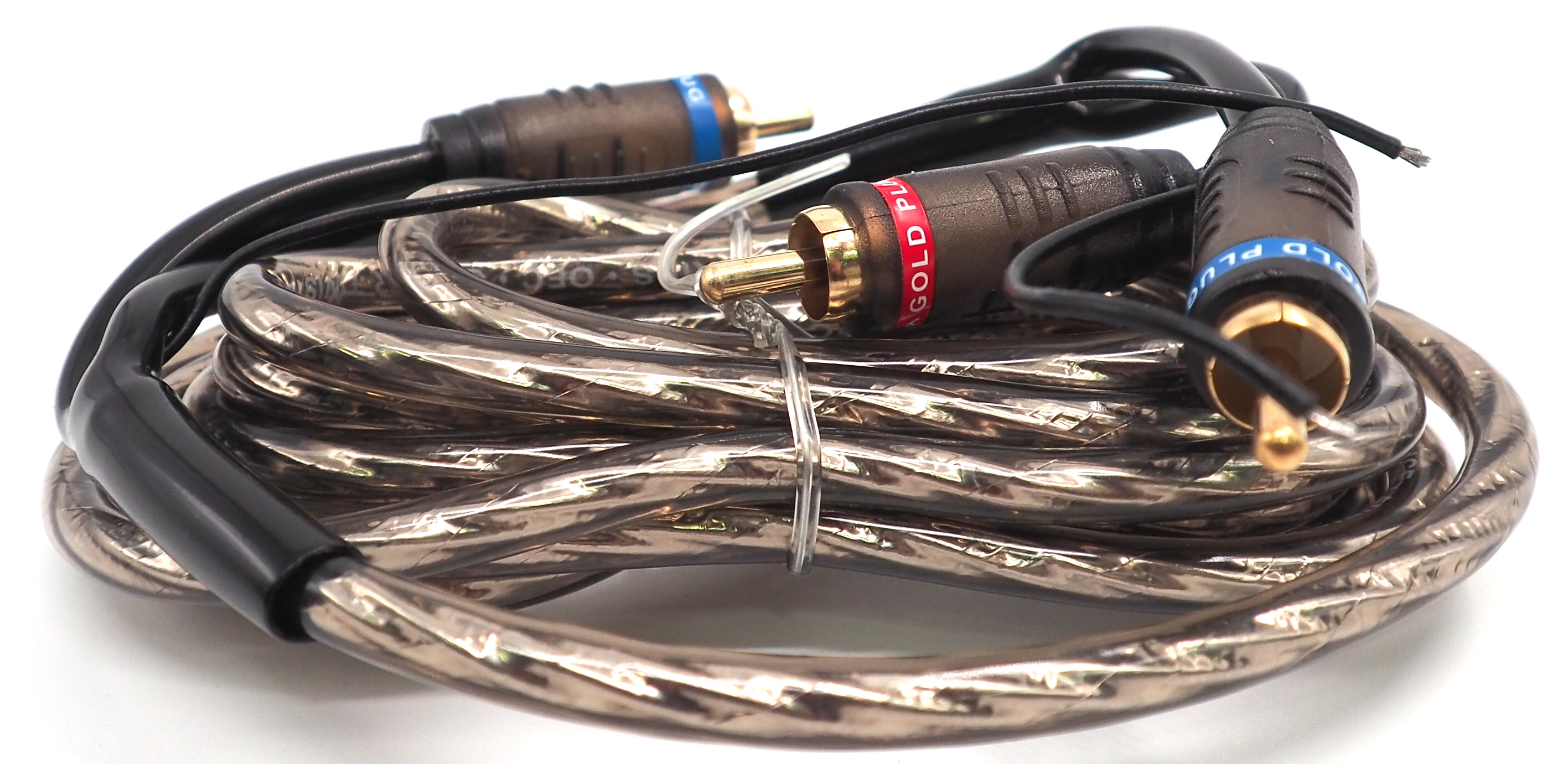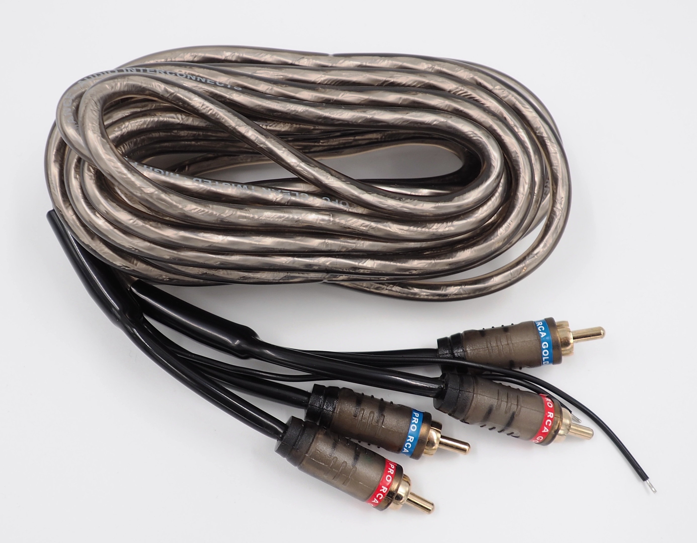 Grey Spiral RCA Cable Aluminium Foil Shielding & Drain Wire Fixed Cinch 5m With Remote Cable