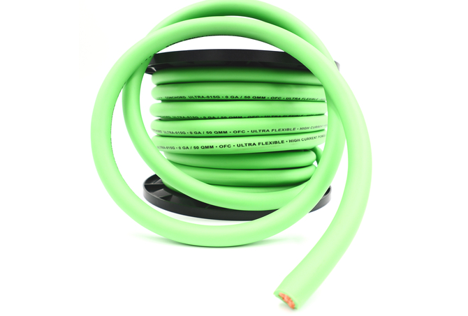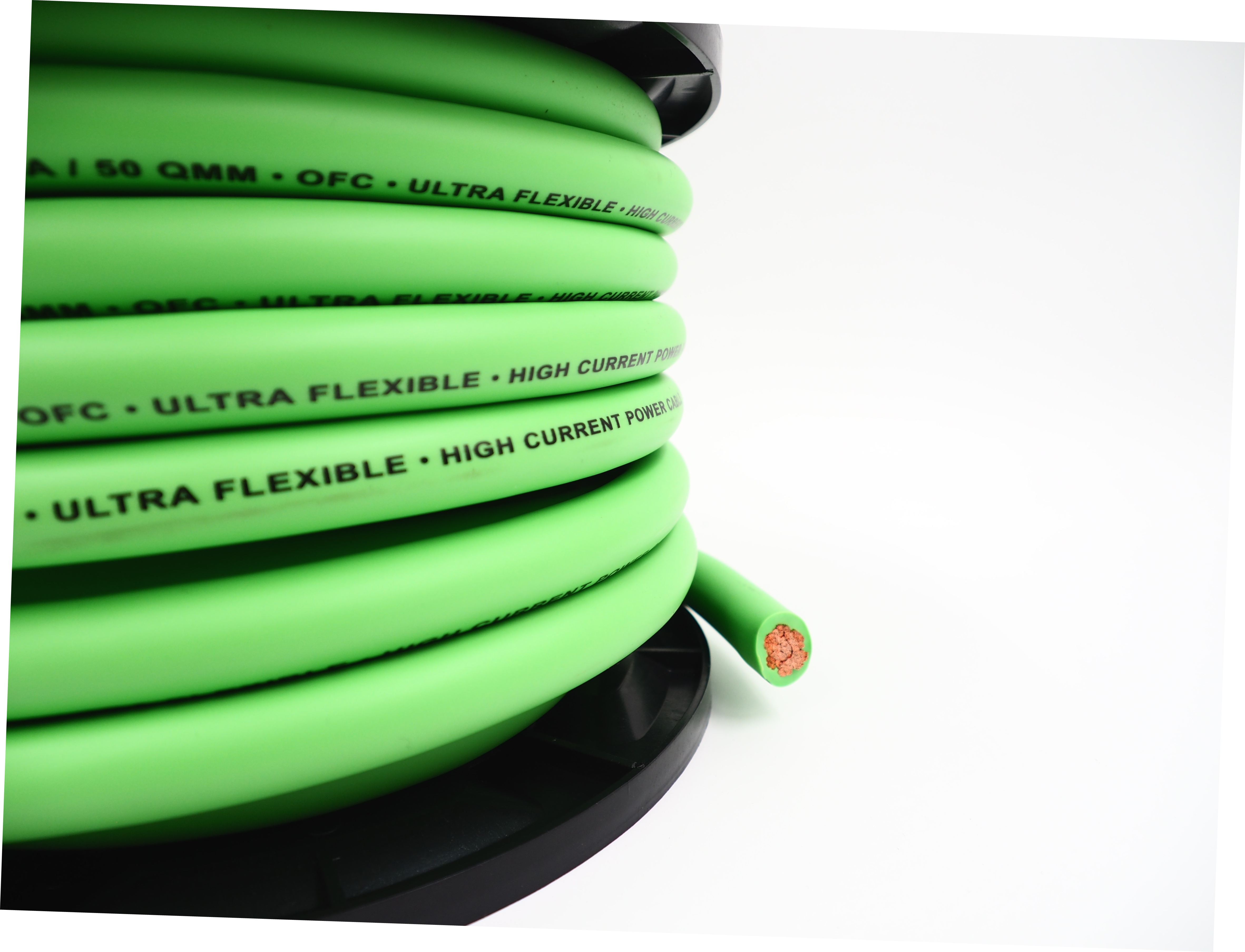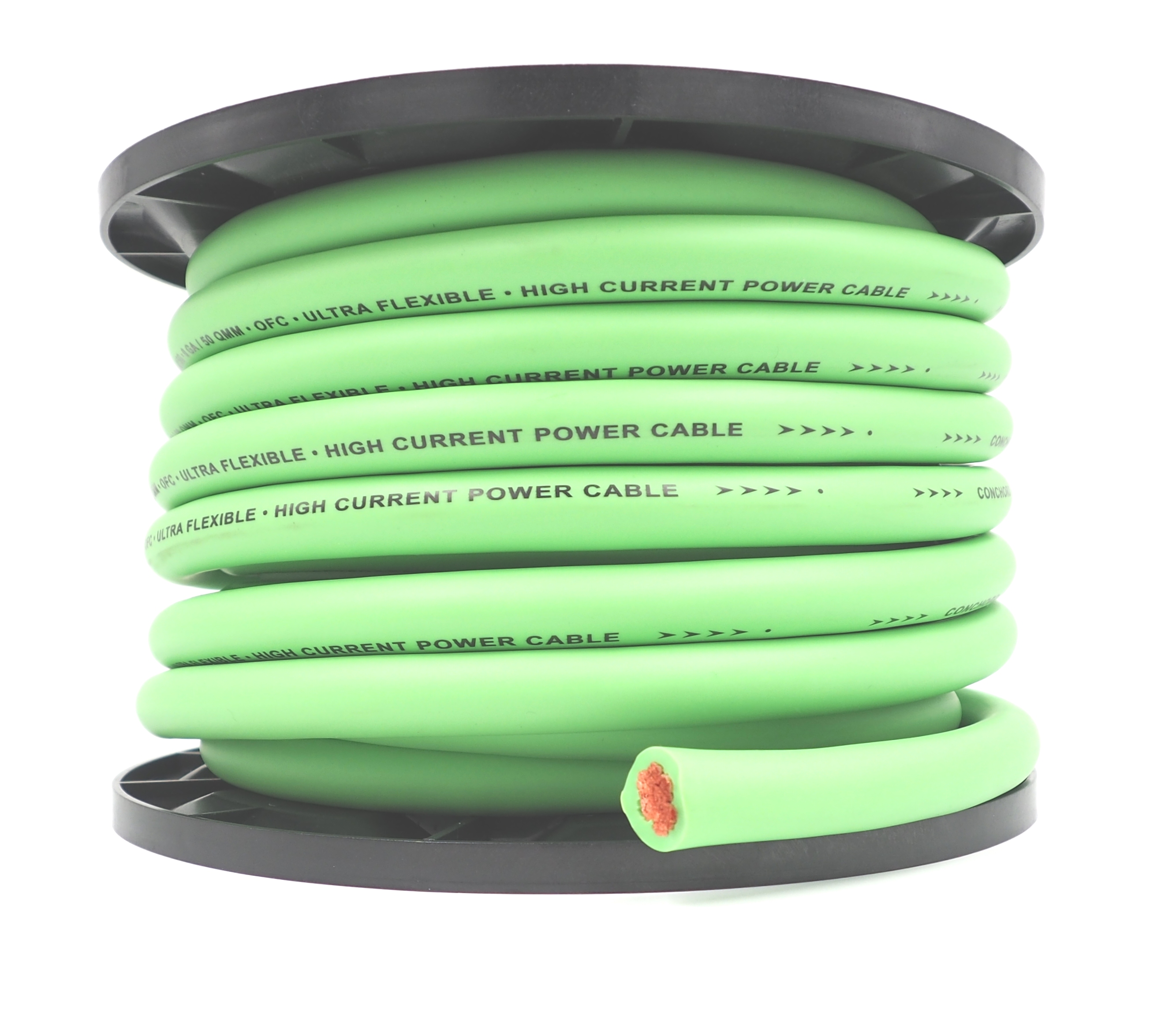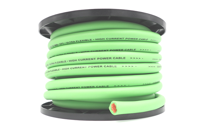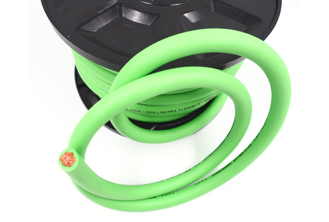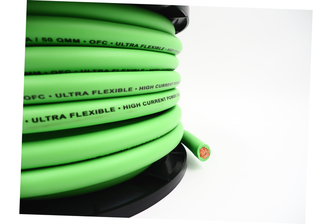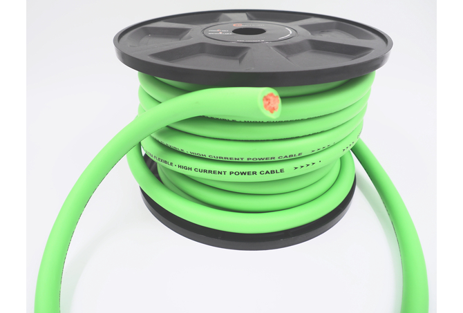 Power Cable with Ultra Flexible PVC 0 G / 50 qmm OFC 99% Copper High Current, Green matte Ultra flexible PVC 15 m Spool