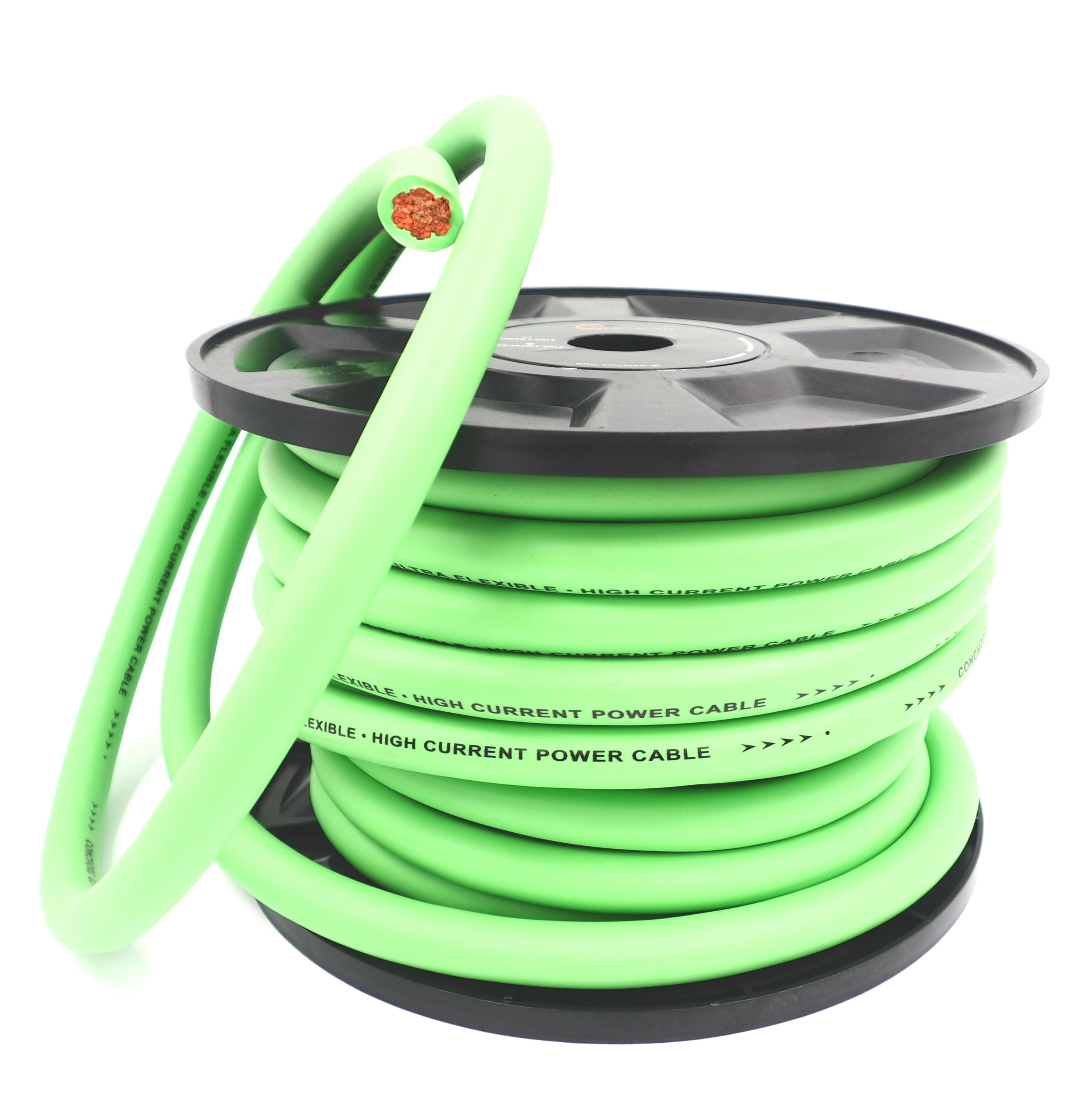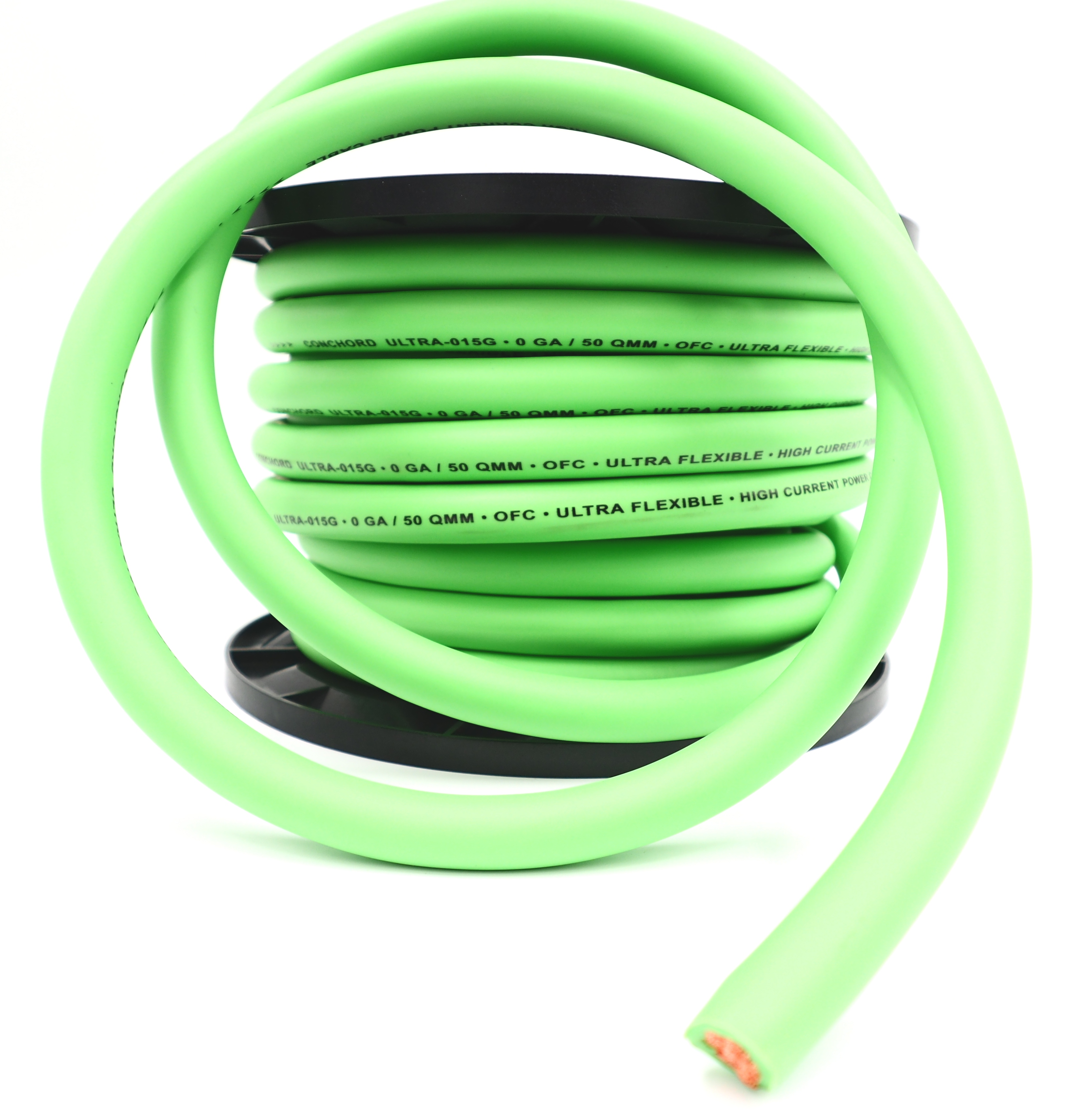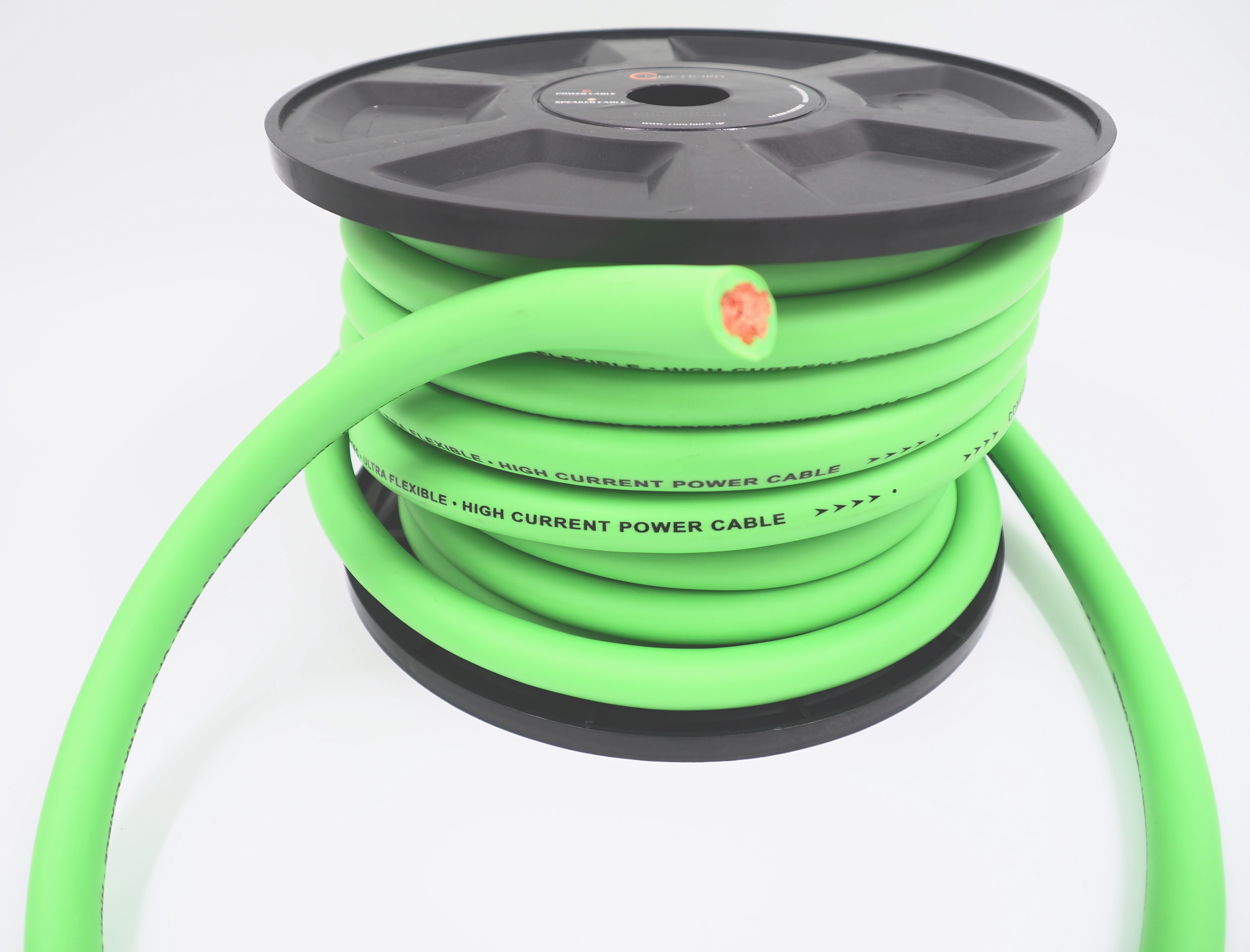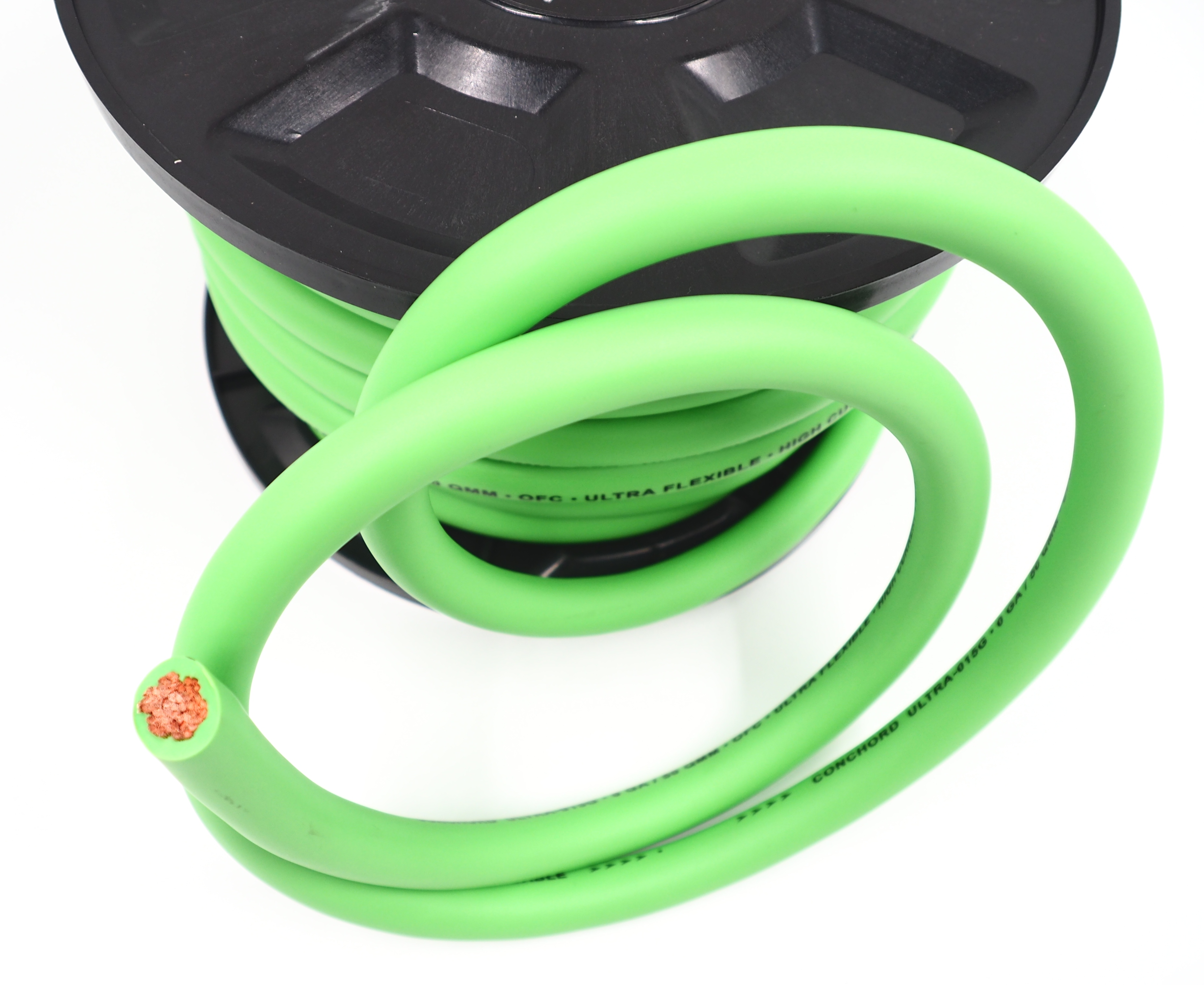 Power Cable with Ultra Flexible PVC 0 G / 50 qmm OFC 99% Copper High Current, Green matte Ultra flexible PVC 15 m Spool